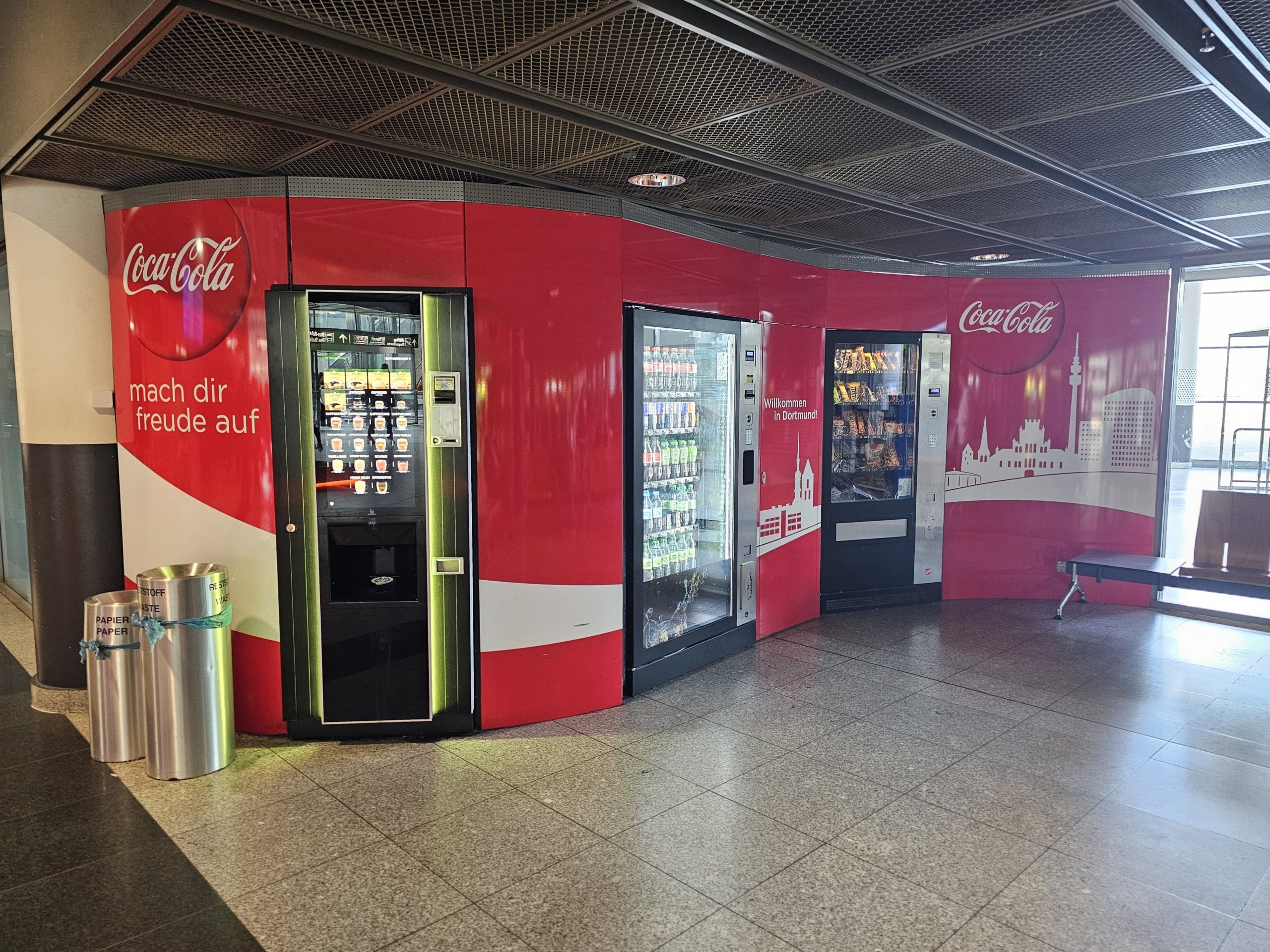 Il n'y a pas de supermarché ou d'épicerie à l'aéroport de Dortmund. Dans la zone de transit, vous pouvez utiliser le petit magasin "Take Away" avec des sandwichs préemballés, des baguettes ou des boissons aux portes d'embarquement 7 - 12.