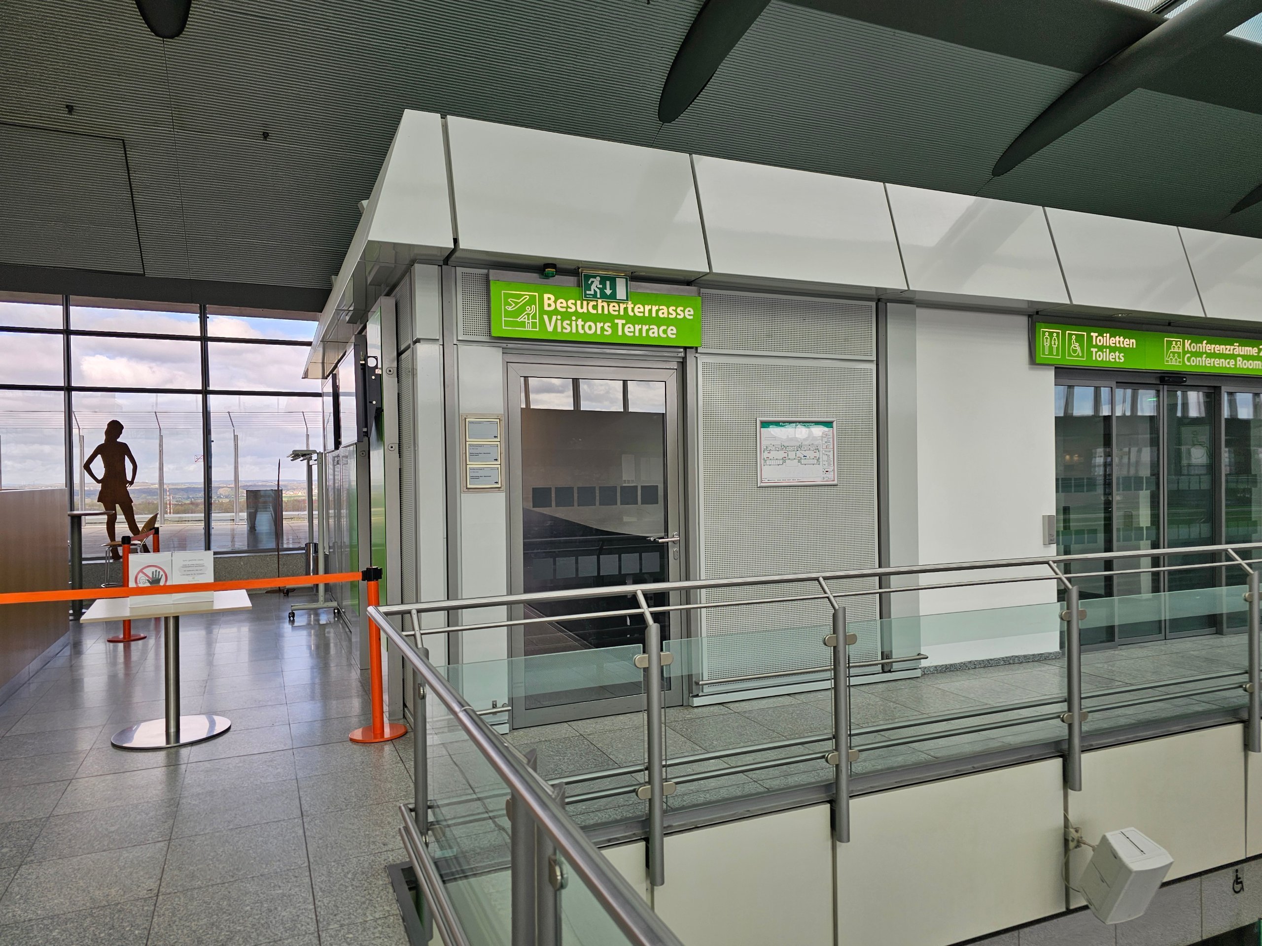 Au 2ème étage de la partie publique, une belle terrasse avec vue sur la zone aéroportuaire, le décollage et l'atterrissage des avions.