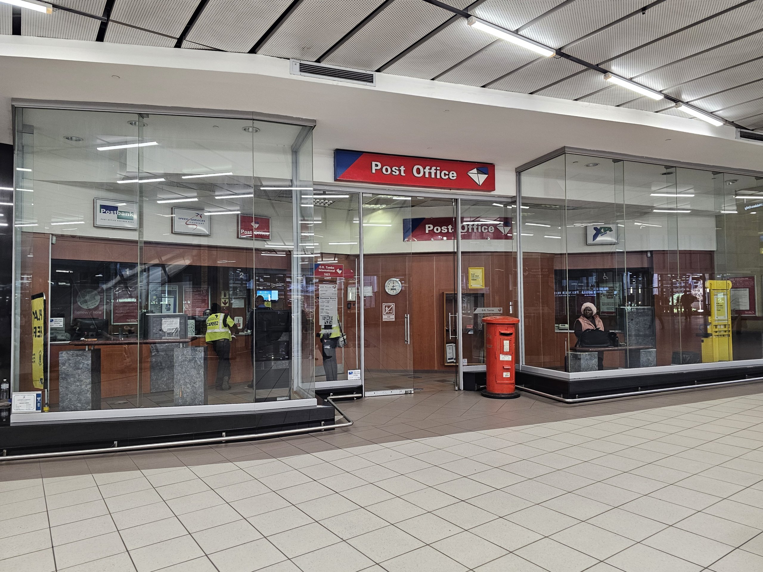 Un bureau de poste sud-africain se trouve au rez-de-chaussée du terminal principal, près du hall des arrivées. Il est ouvert tous les jours, y compris le week-end, de 8h à 19h.
