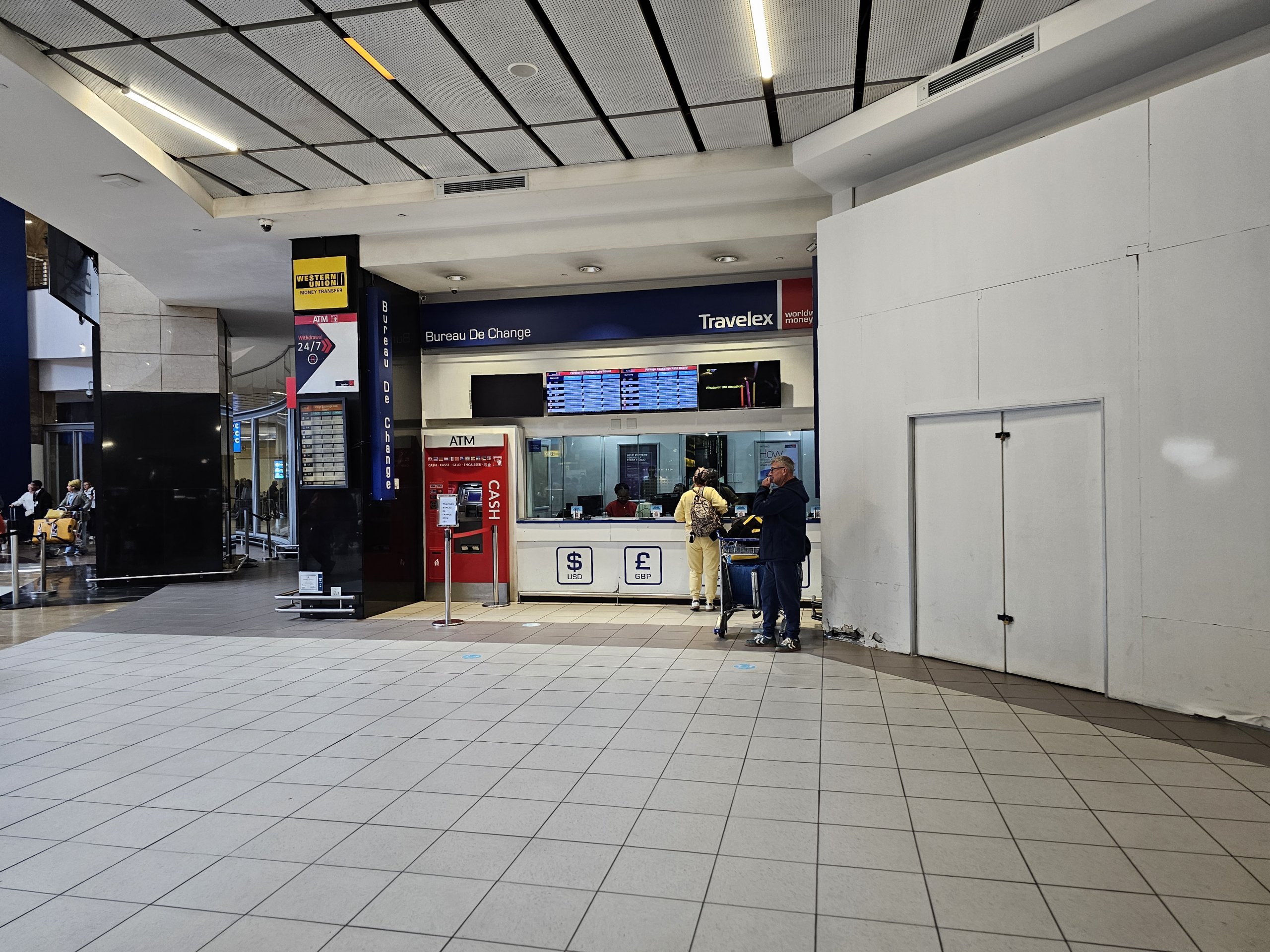 Dans tout l'aéroport, vous trouverez un certain nombre de guichets automatiques de banques locales telles que Nedbank, ABSA, Netbank et Standard Bank, où vous pouvez également effectuer des retraits avec des cartes étrangères.
