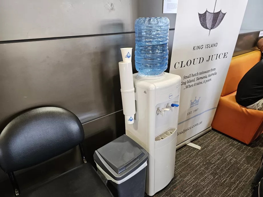 Les passagers ont de l'eau gratuite et l'aéroport est également le seul endroit de l'île où l'internet wi-fi est gratuit.