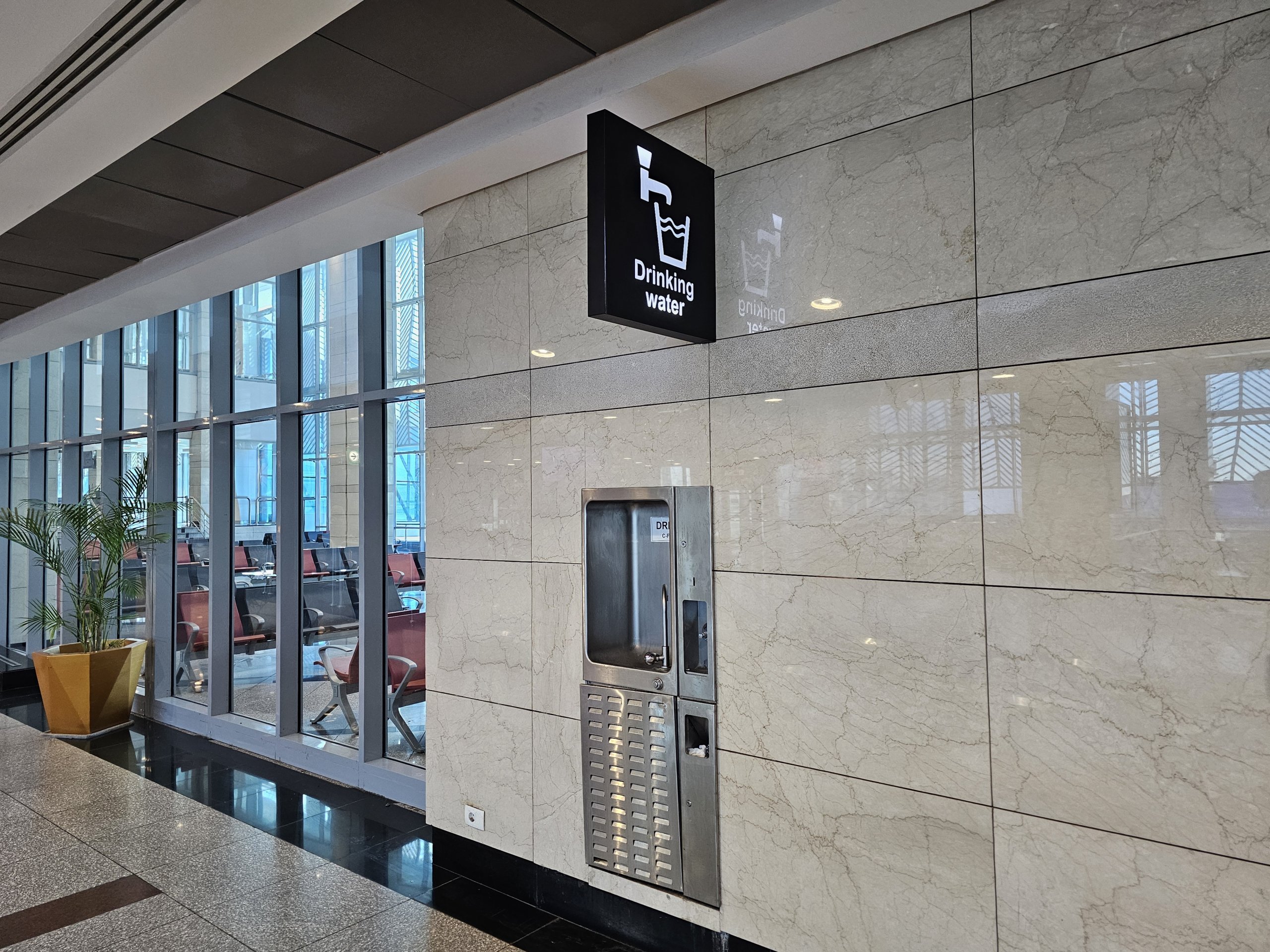 Des fontaines d'eau potable sont situées à de nombreux endroits dans les zones publiques et de transit de tous les terminaux.