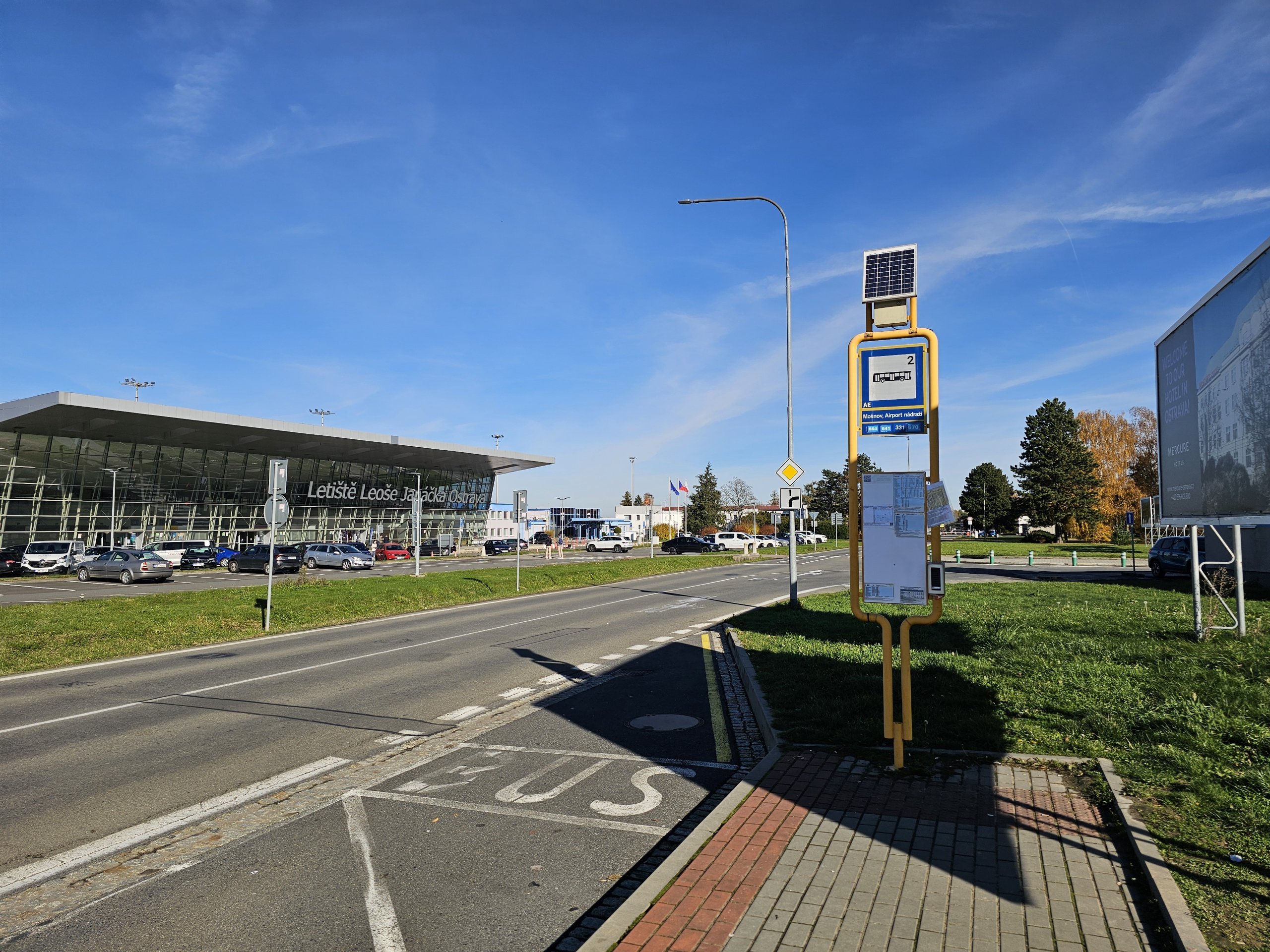 - La ligne AE – Airport Express - va au centre-ville (arrêt Hornopolní) et à la gare routière centrale. Elle s'arrête également dans le quartier de Dubina ou au stade de la ville.