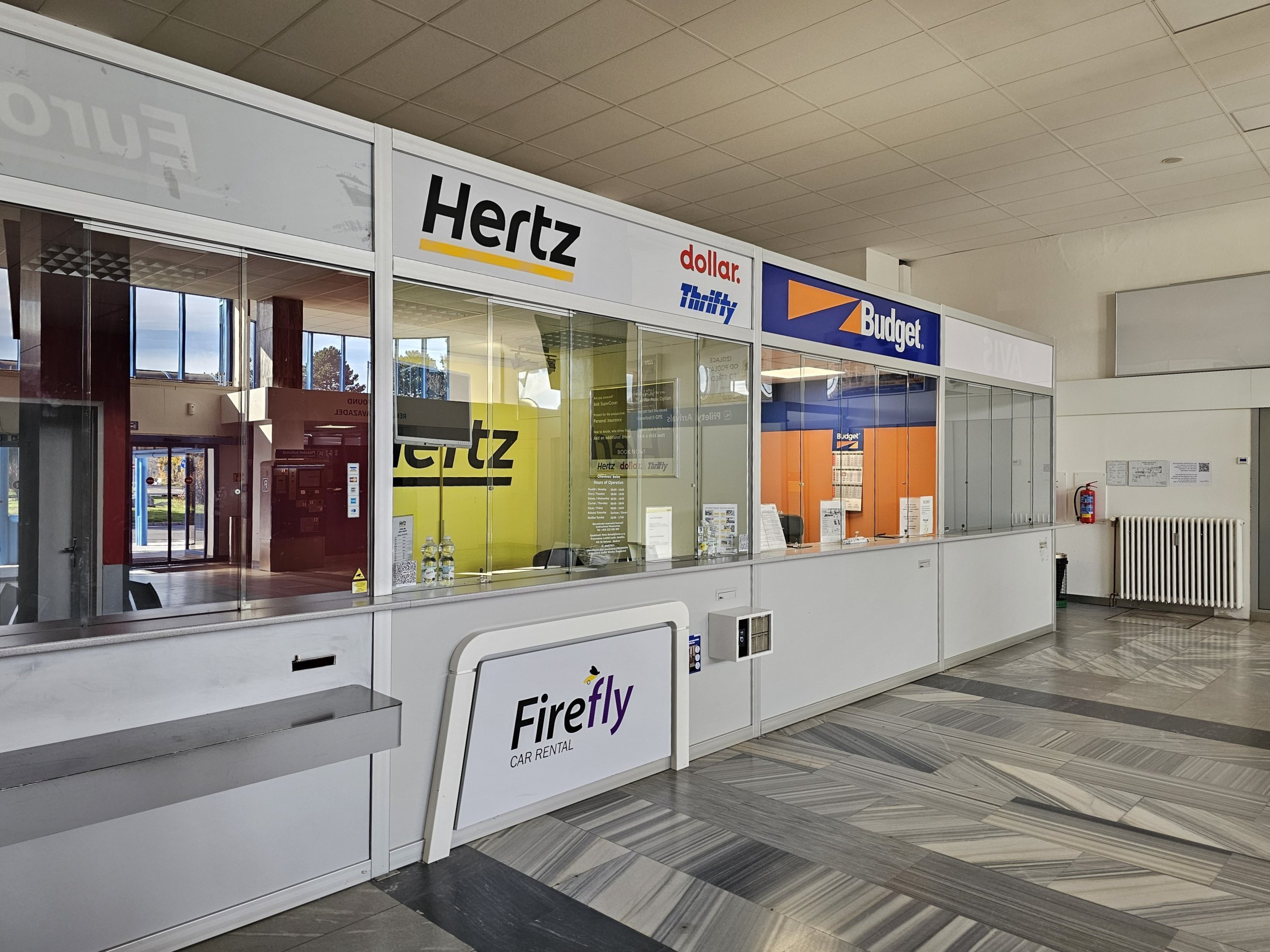 Les comptoirs de location de voitures sont situés directement dans le hall des arrivées.