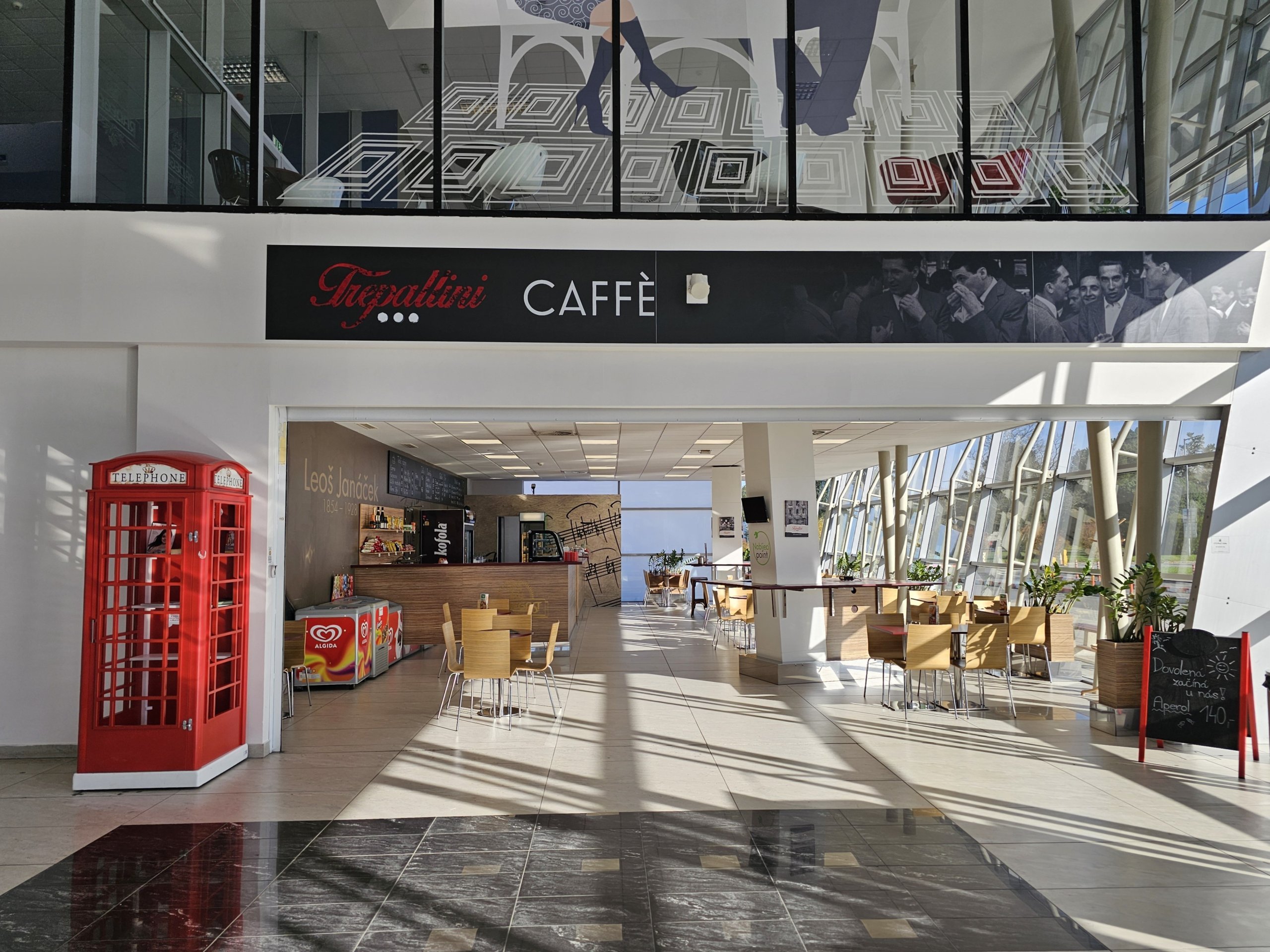 Dans la zone publique de l'aéroport, vous trouverez le café Fragollini qui propose des baguettes, des sandwichs ou des boissons.