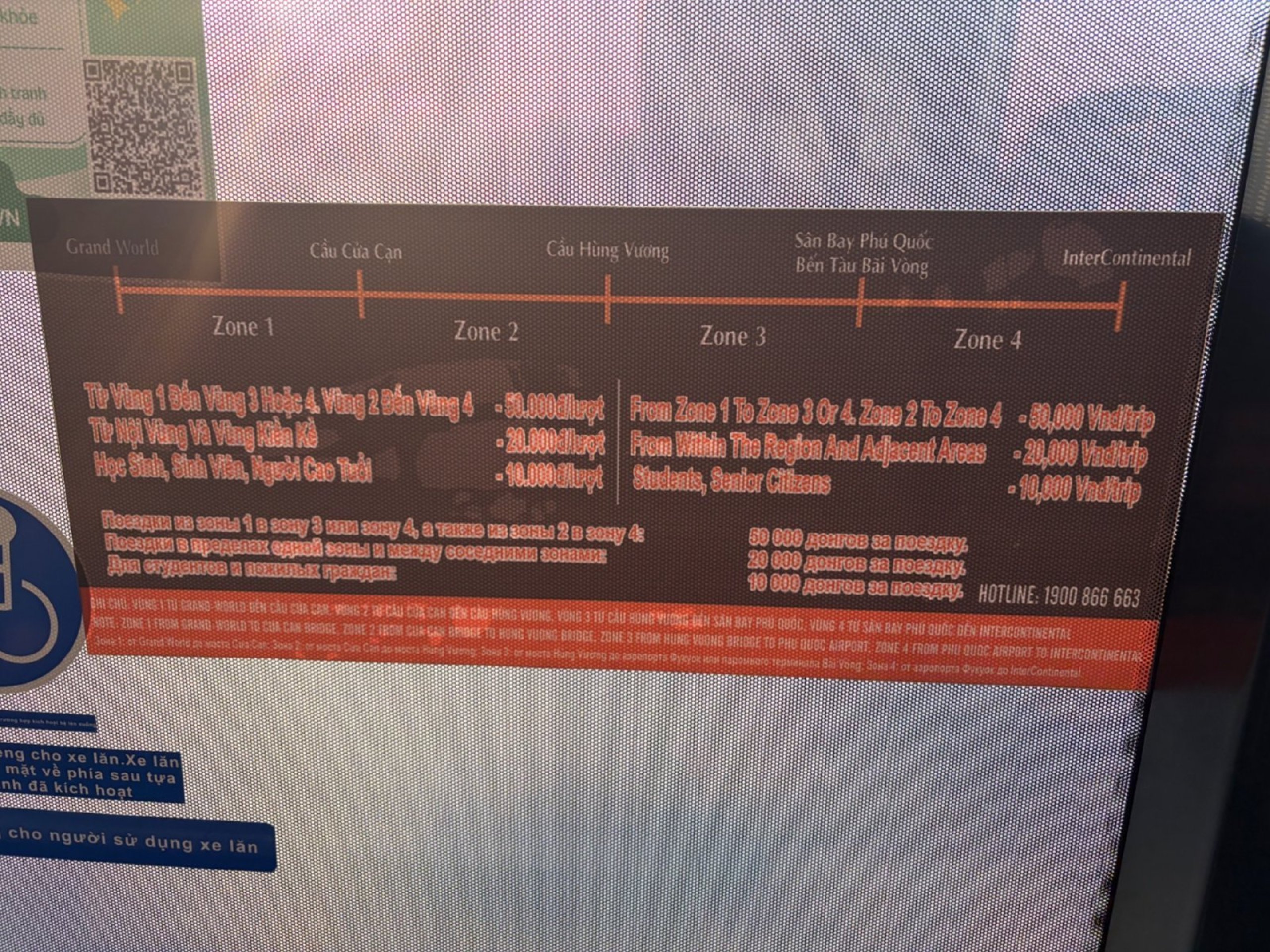 Le prix des billets est calculé par zone et un trajet simple coûte entre 10 000 vnd et 40 000 vnd.