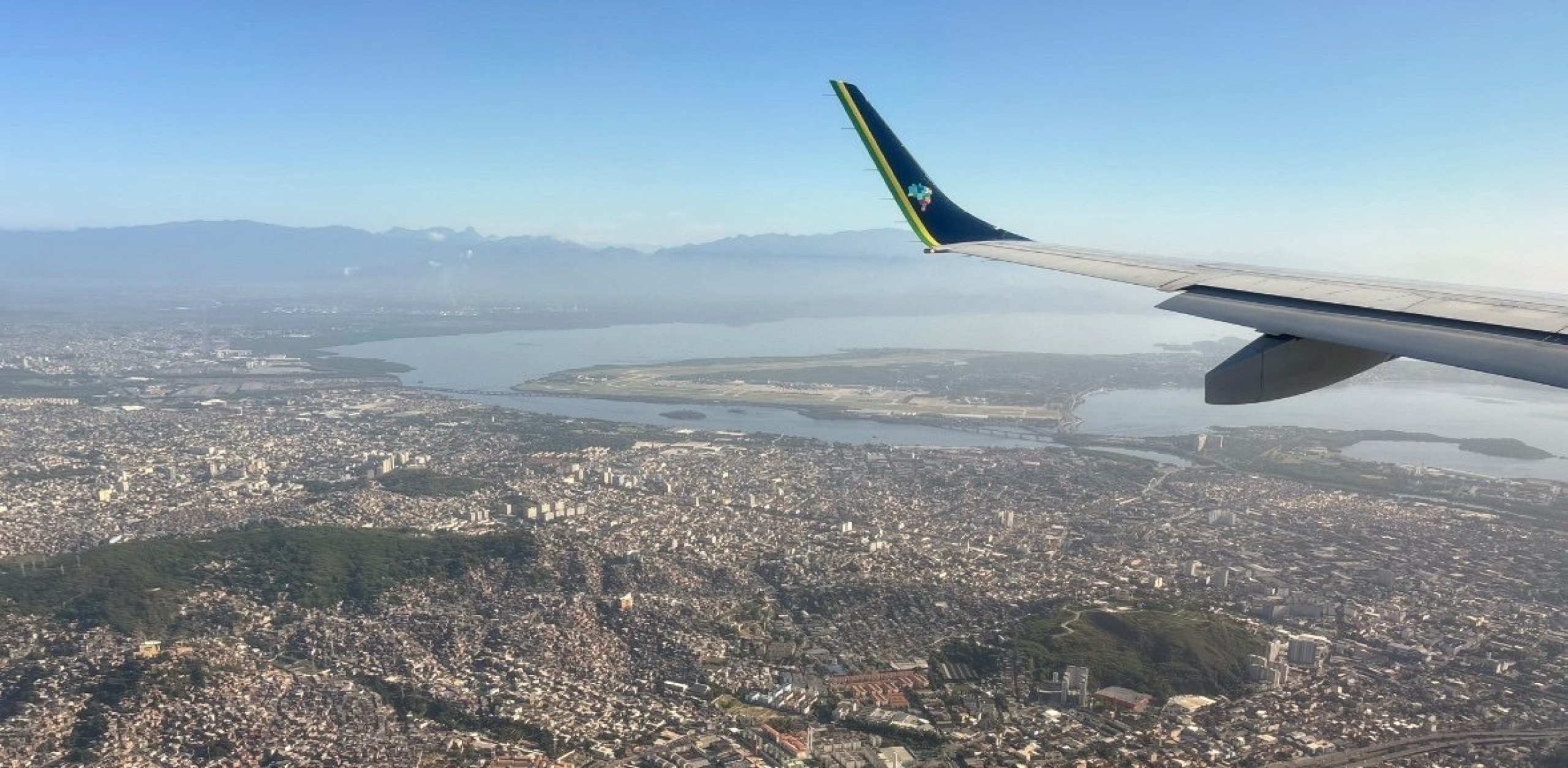 Vue de l'aéroport de Galeão à Ilha do Governador lors d'un vol GRU-SDU en Embraer-195 de Azul Linhas Aéreas.