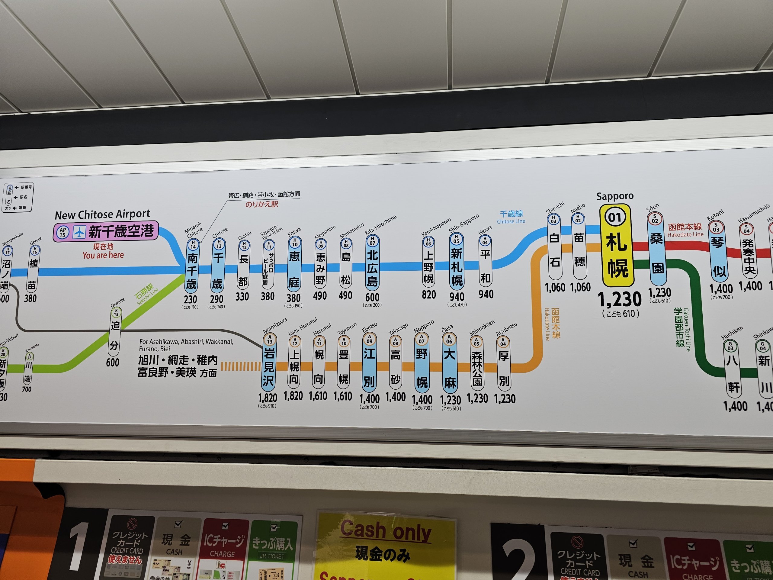 Si vous en avez une que vous avez déjà utilisée lors d'un autre voyage au Japon, vous n'avez pas à vous soucier de quoi que ce soit, il vous suffit de l'attacher au tourniquet. Si vous souhaitez acheter une carte Kitaca, là encore, il vous suffit d'avoir de l'argent liquide.