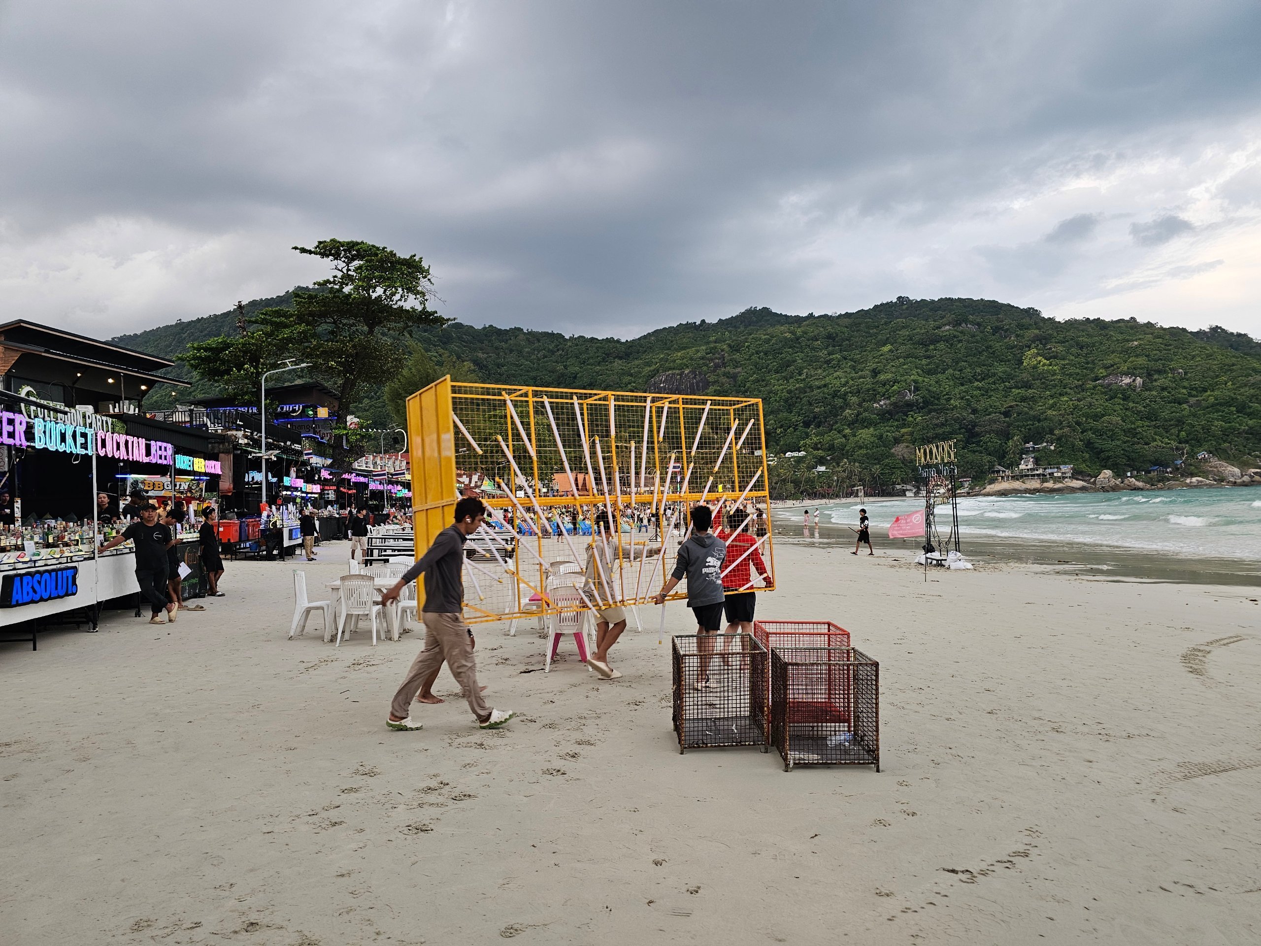 Notre première visite à la plage de Haad Rin a eu lieu dans l'après-midi, alors que les préparatifs étaient encore en cours.