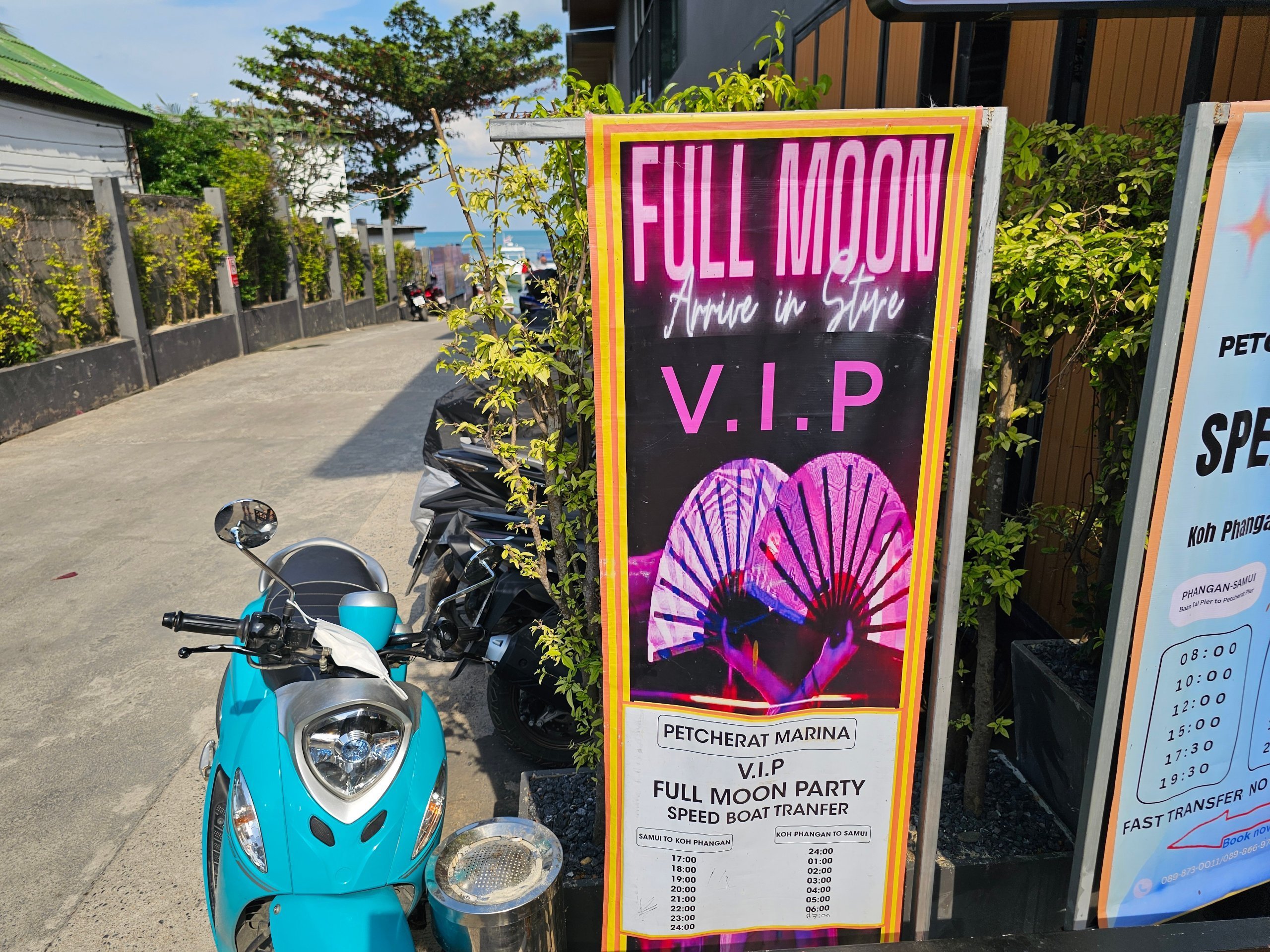C'est la meilleure option. Avec un scooter, vous pouvez toujours vous garer quelque part - et même les parkings pour voitures sont nombreux dans le centre de Haad Rin (à 15 minutes de marche de la plage).