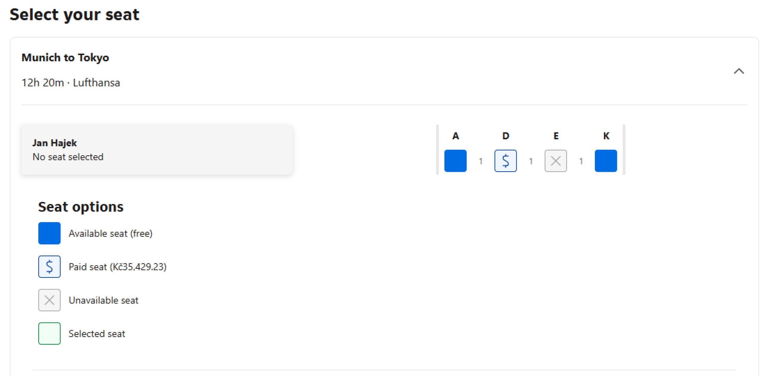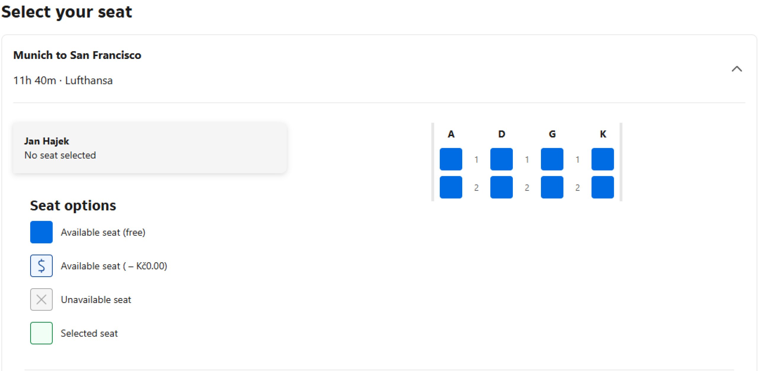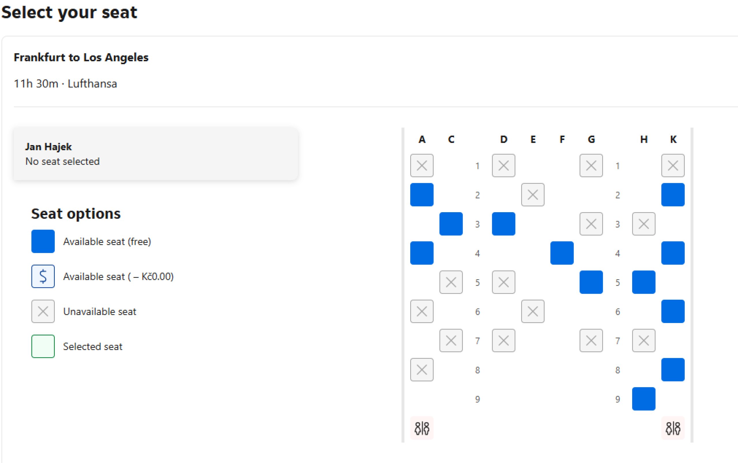 Voici quelques exemples de la carte des sièges lors d'une réservation sur booking.com.