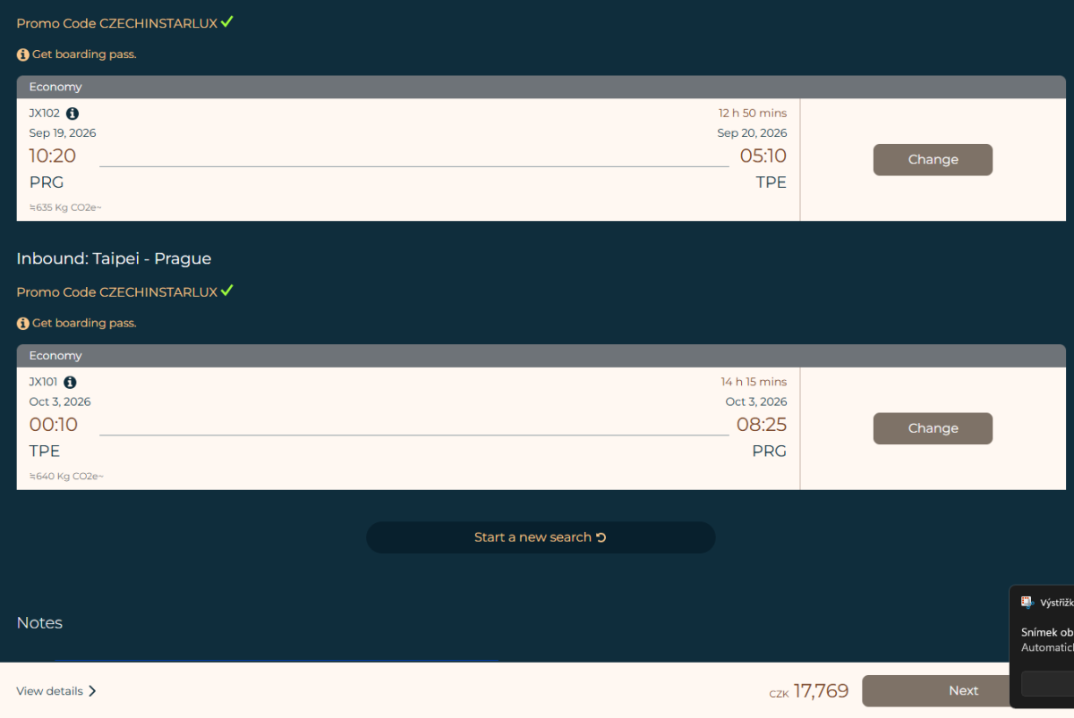 Prague - Taipei : 10:20-05:10 (+1 jour)