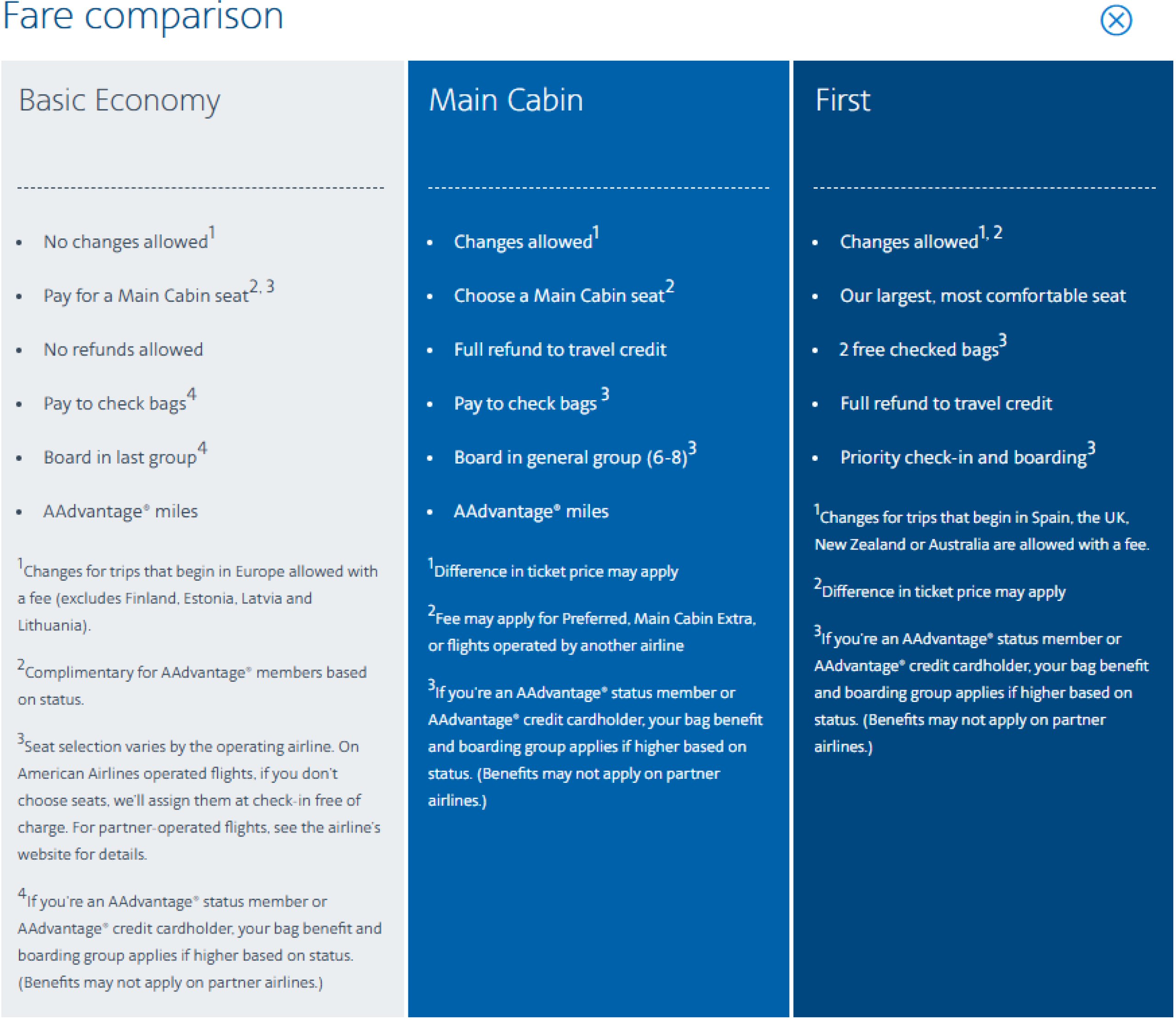 American Airlines propose des vols en classe économique, en classe économique supérieure, en classe affaires et en première classe.