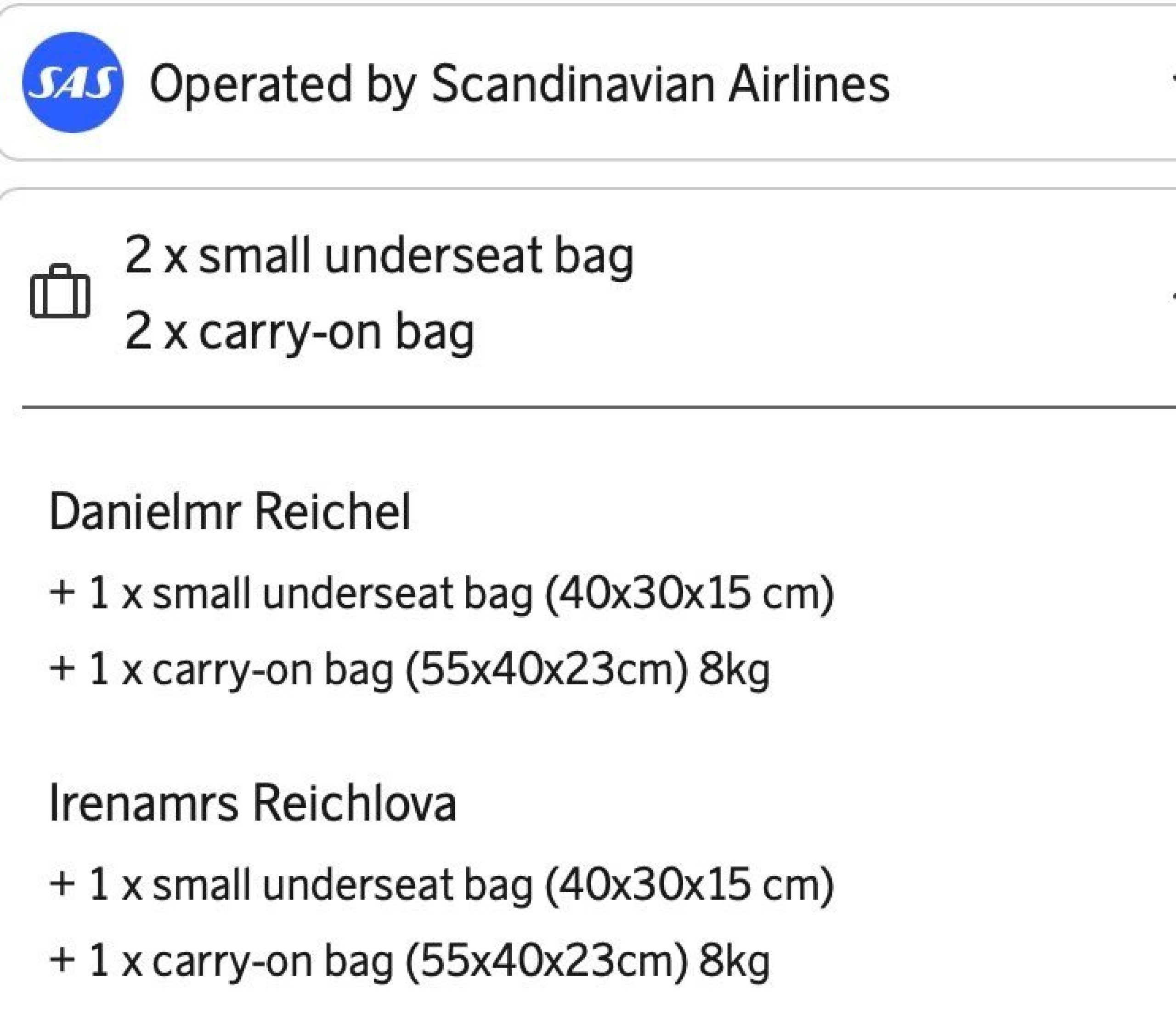 Ce que beaucoup de passagers ne prennent pas en compte, c'est que le tarif SAS GO Light le moins cher pour les vols courts en Europe et autour de l'Europe (Afrique du Nord, îles Canaries, etc.) ne comprend qu'un petit bagage à main qui se place sous le siège devant vous.