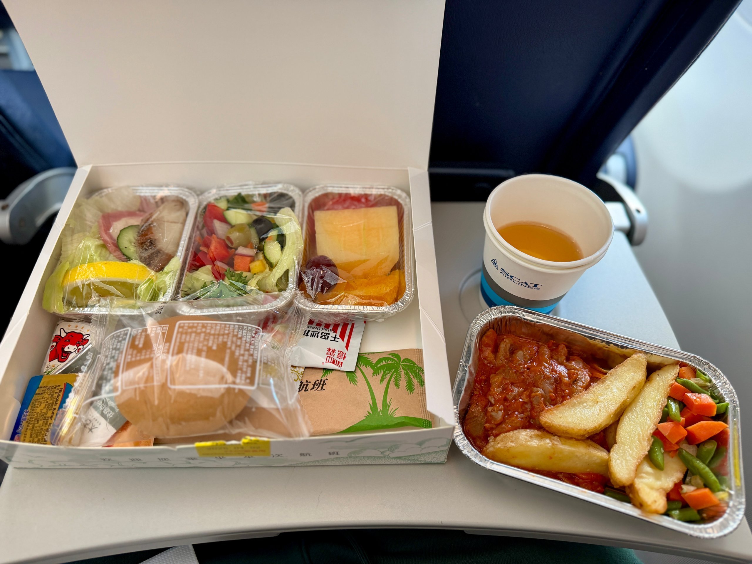 Sur les vols de plus de 2 heures, vous aurez le choix entre deux repas chauds gratuits - généralement du poulet ou du bœuf.