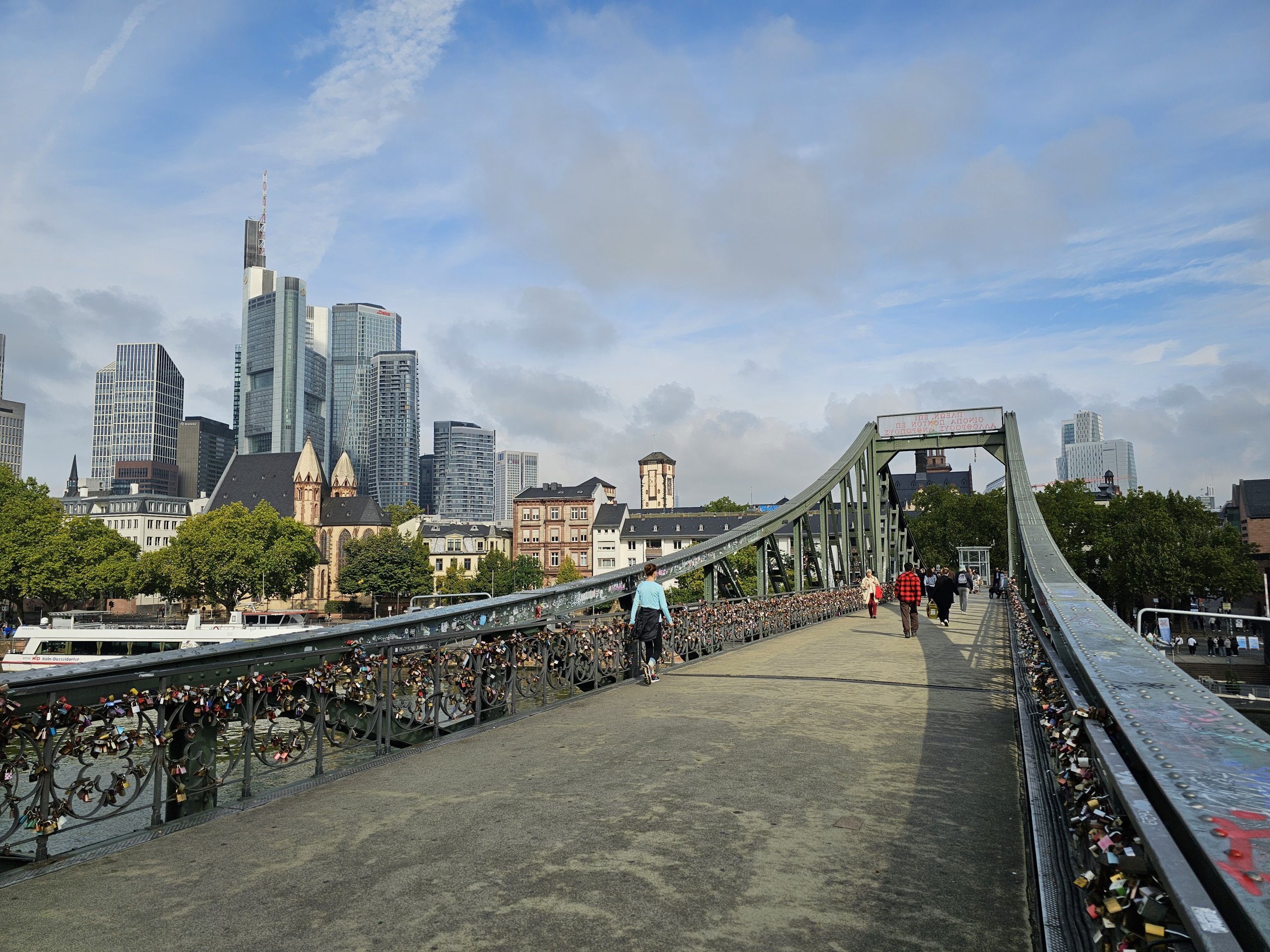 L'Eiserner Steg est un pont piétonnier historique qui mène de la place Römerberg à la partie sud de Francfort en passant par le Main.