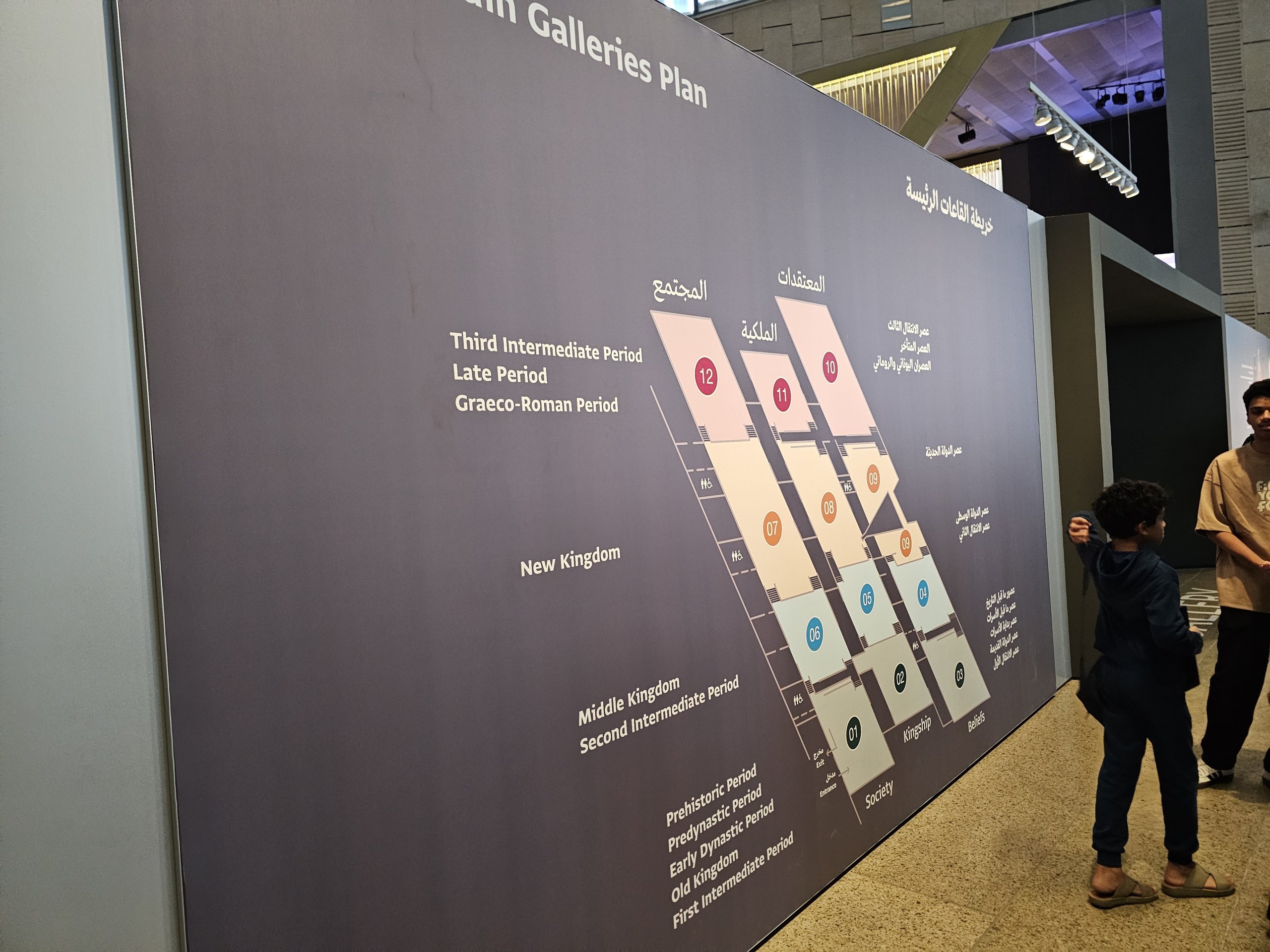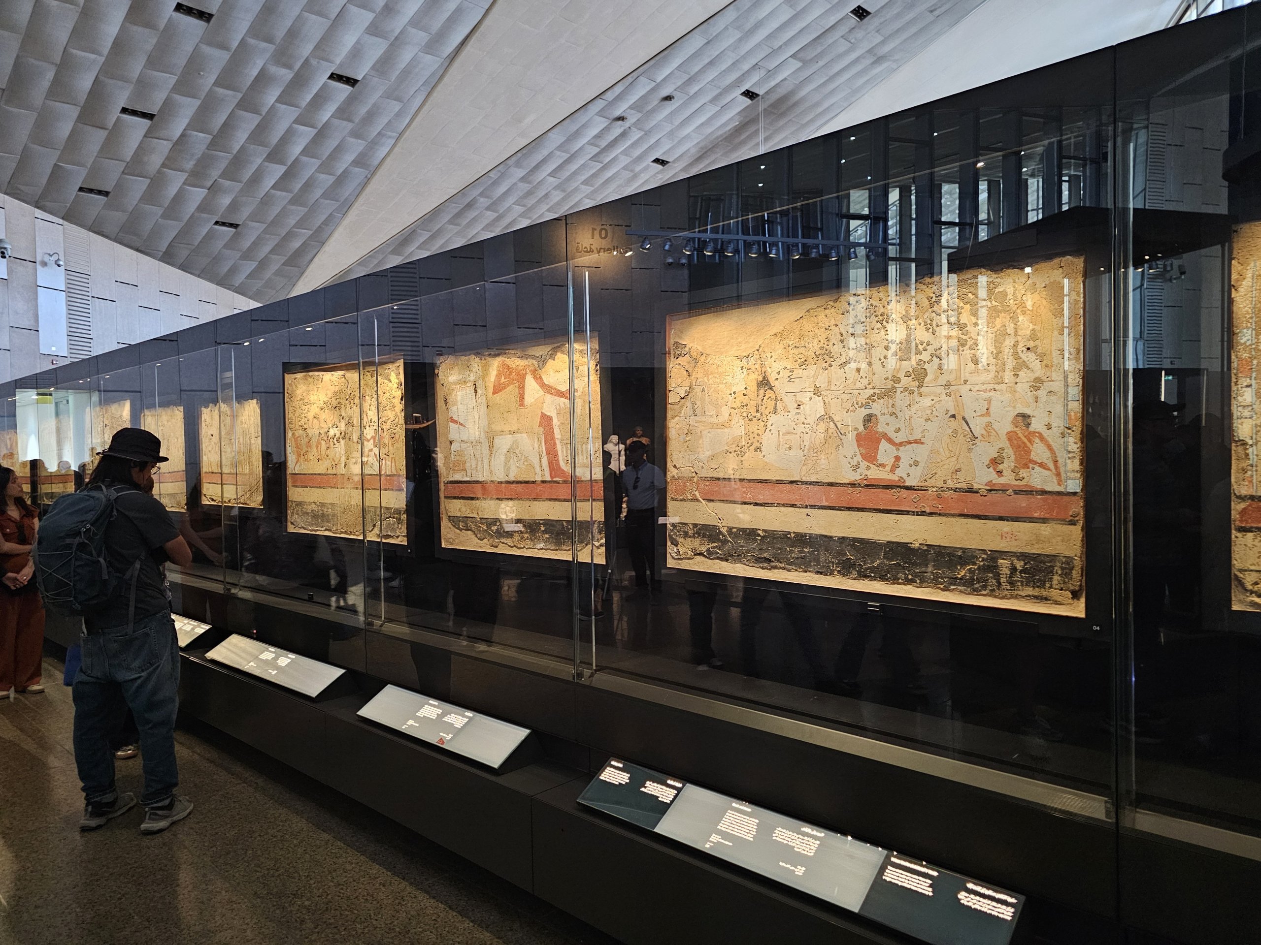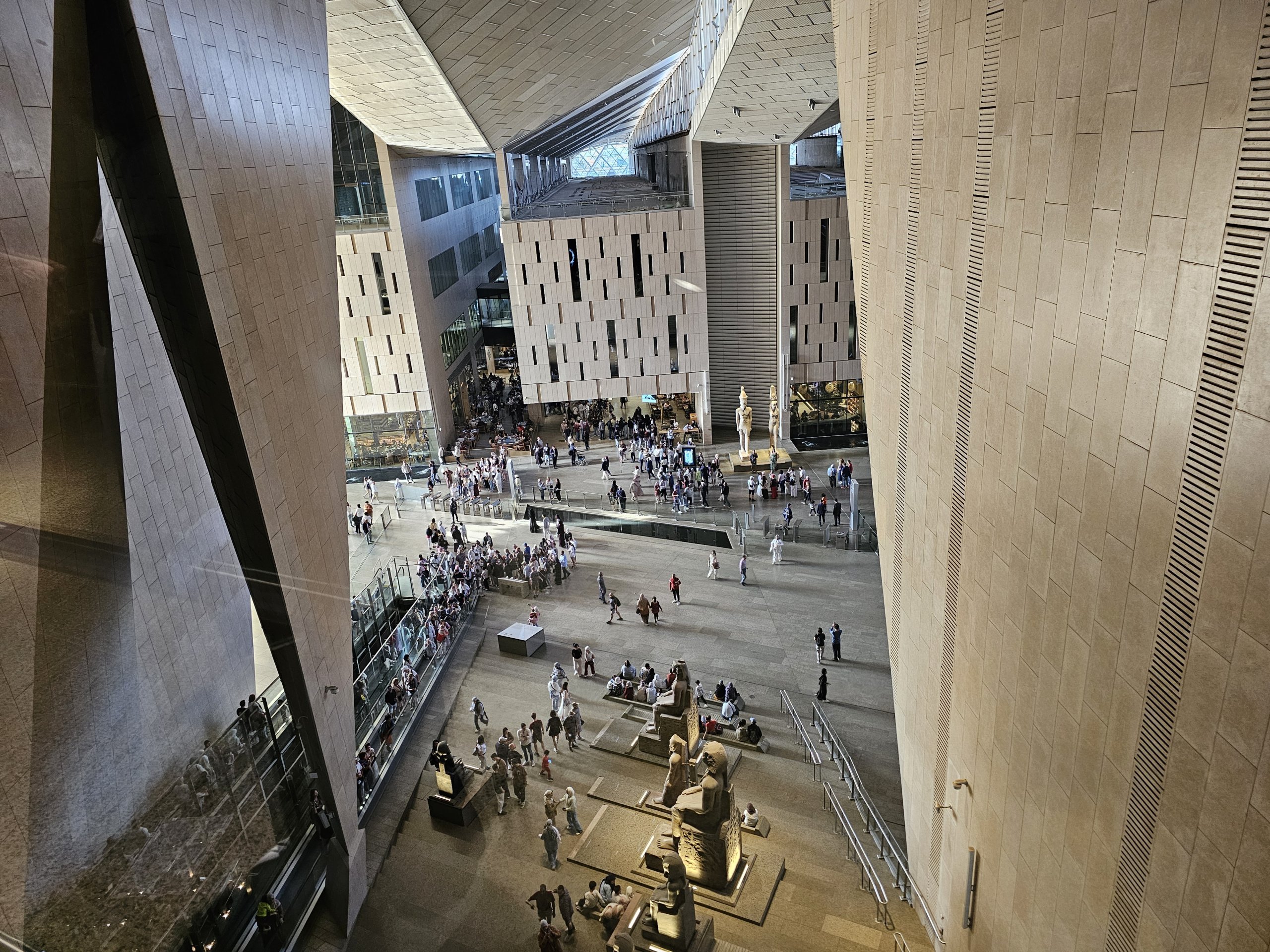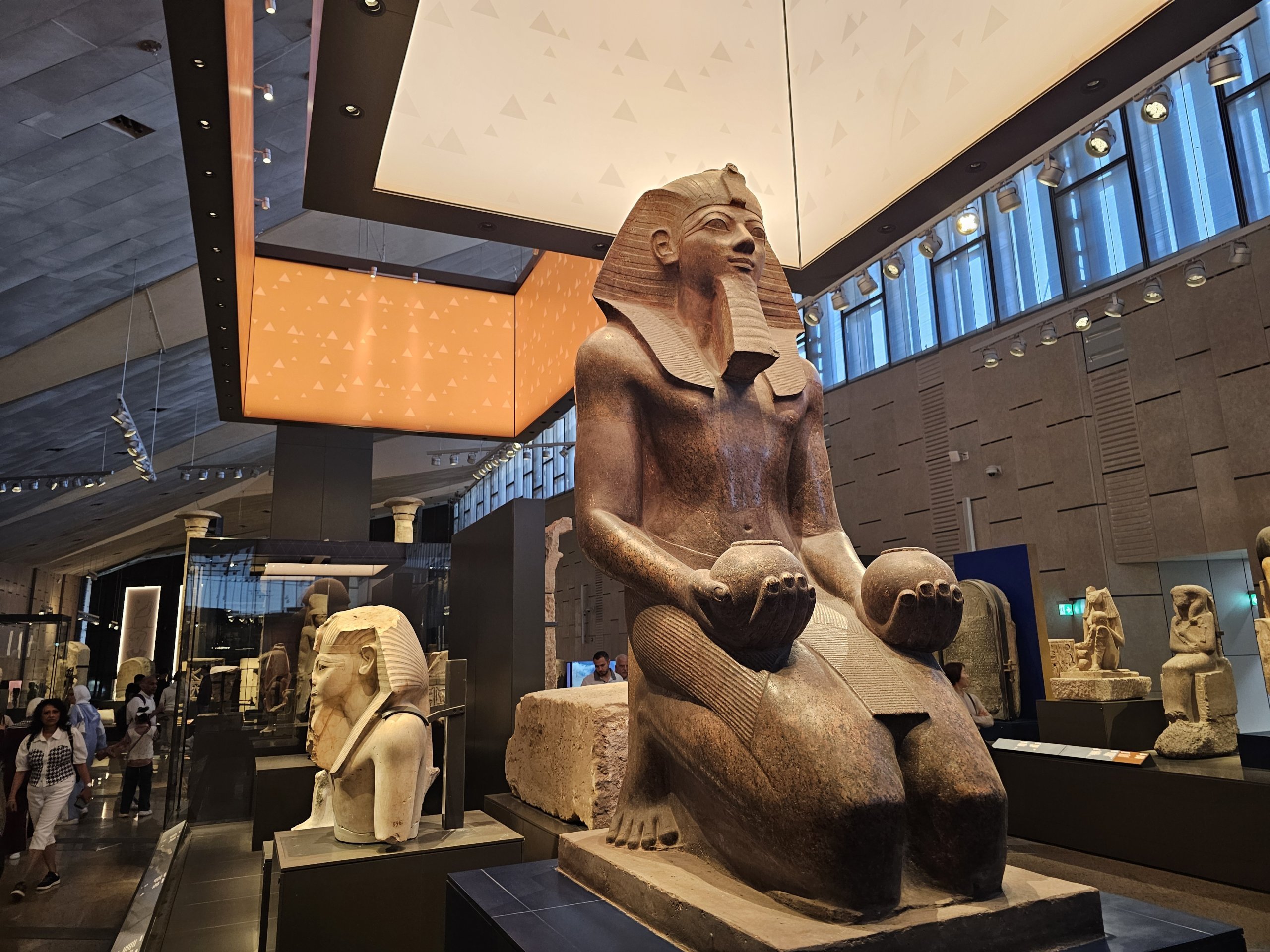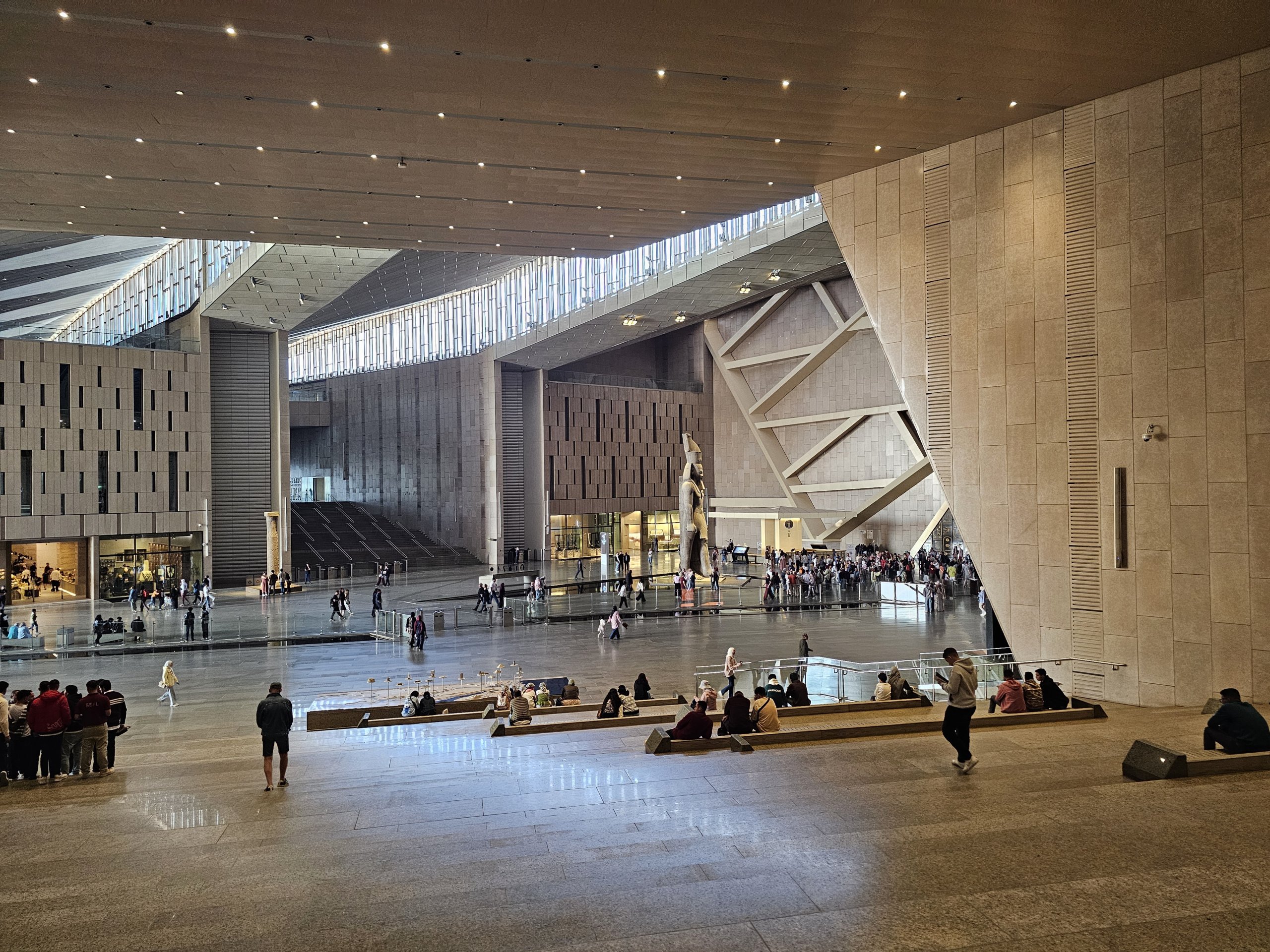 Avec 81 000 mètres carrés d'espace d'exposition , le GEM est le plus grand musée du monde en termes de superficie. Il est installé dans un nouveau bâtiment monumental à environ 2 km au nord de la métropole de Gizeh.
