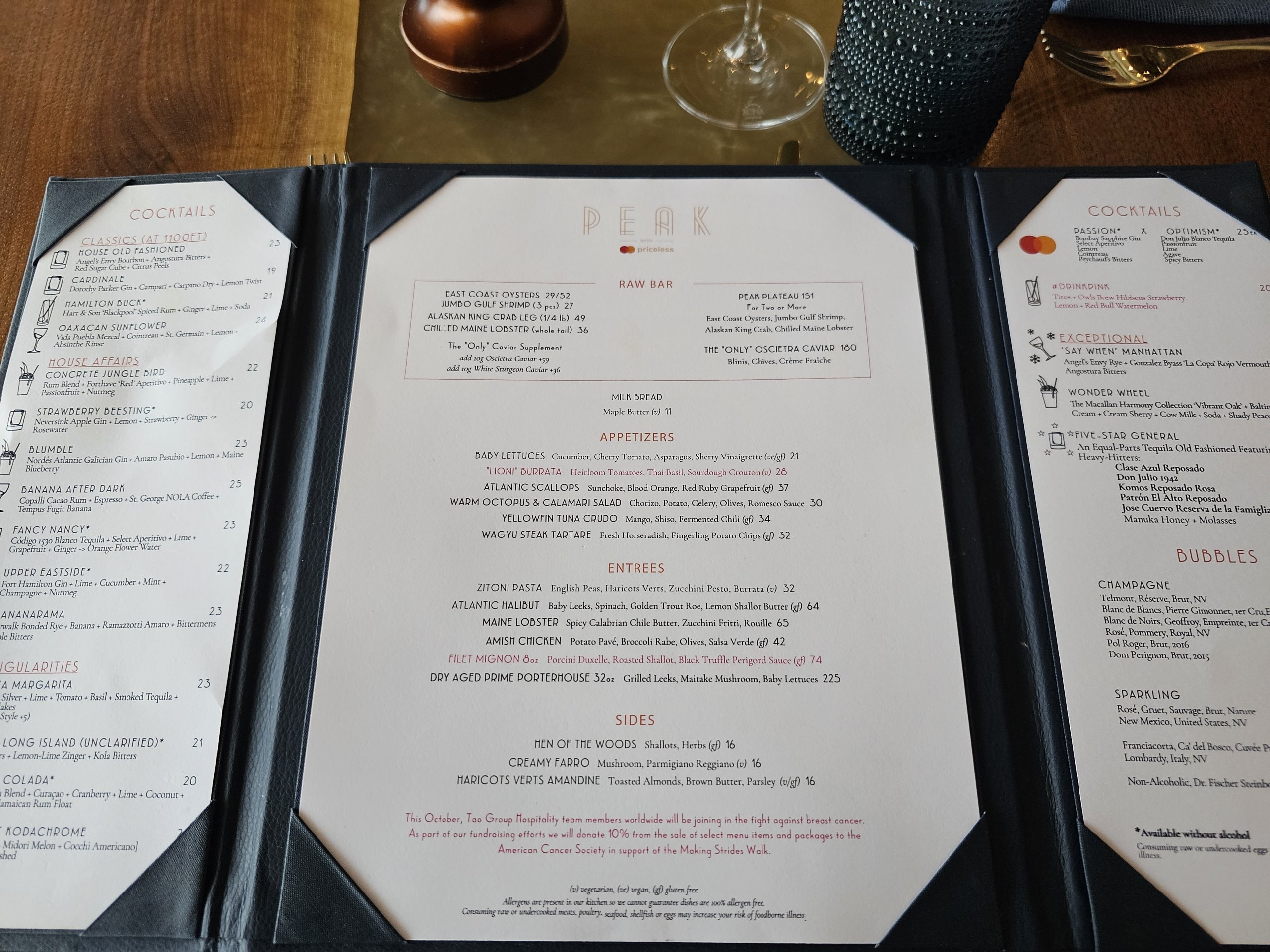 Vous pouvez consulter le menu complet sur le site web du restaurant : peaknyc.com/restaurant-bars.