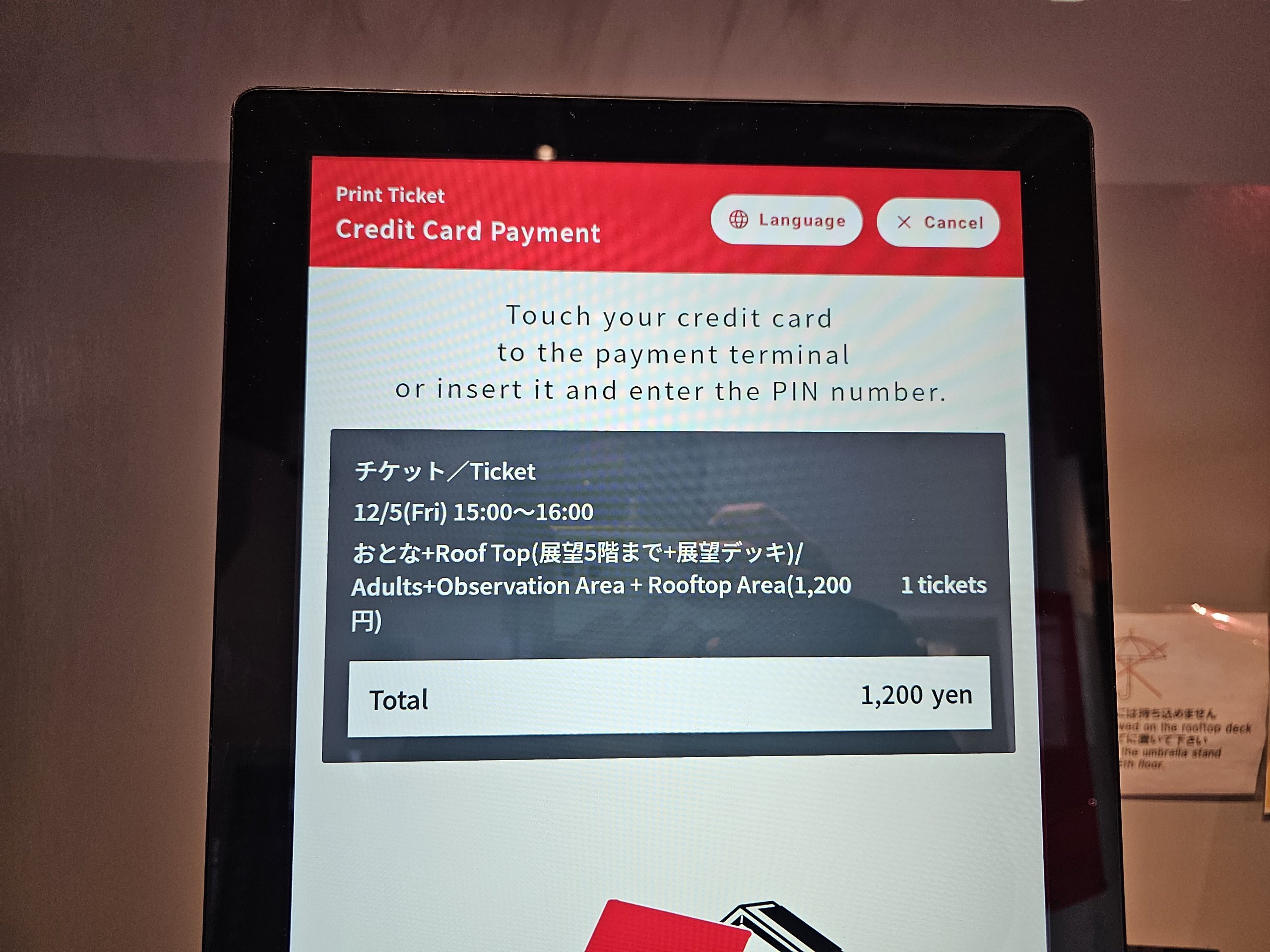 Les billets peuvent être achetés au guichet automatique avec une carte de crédit ou une carte IC japonaise. Les espèces ne sont pas acceptées.