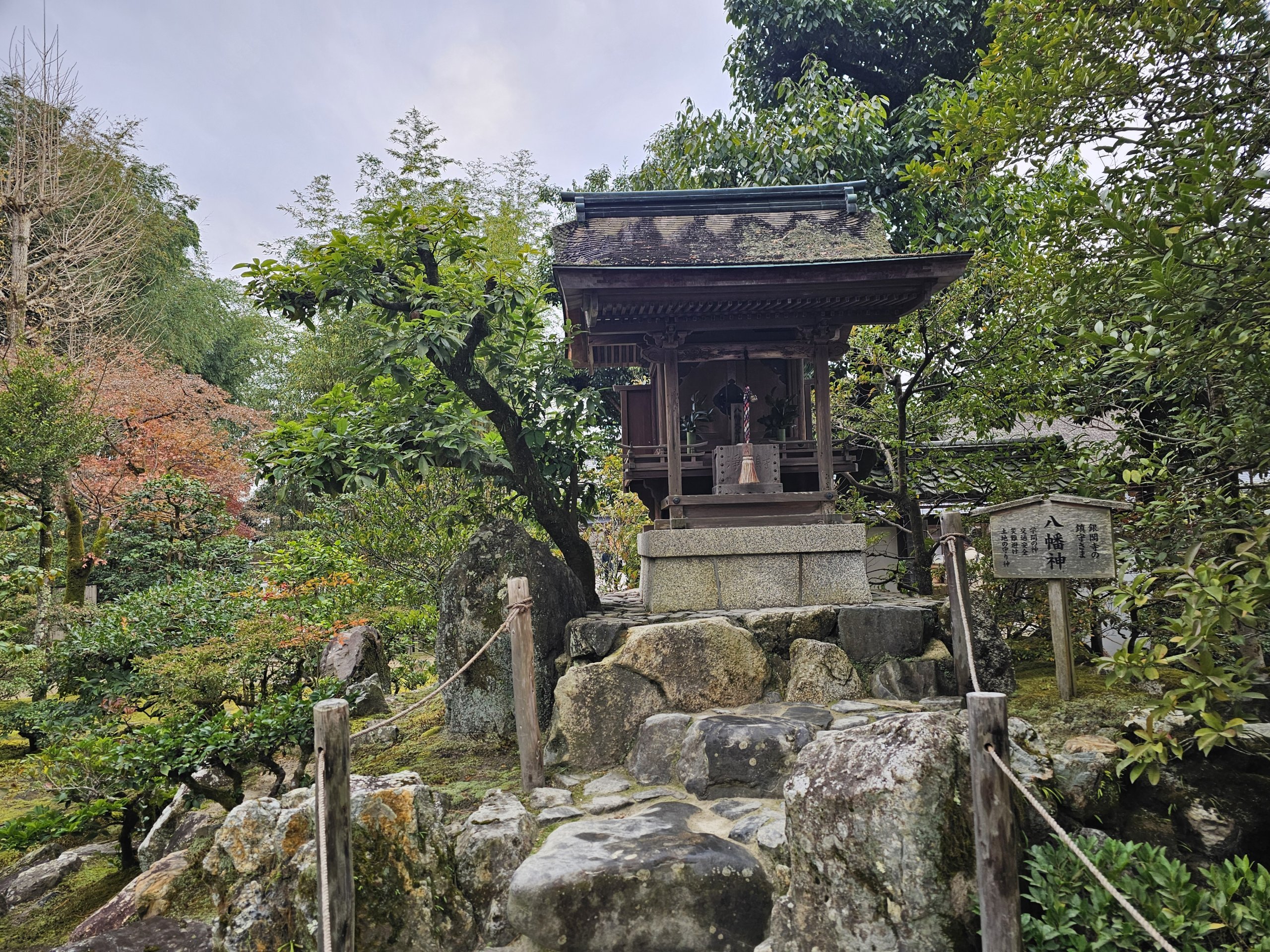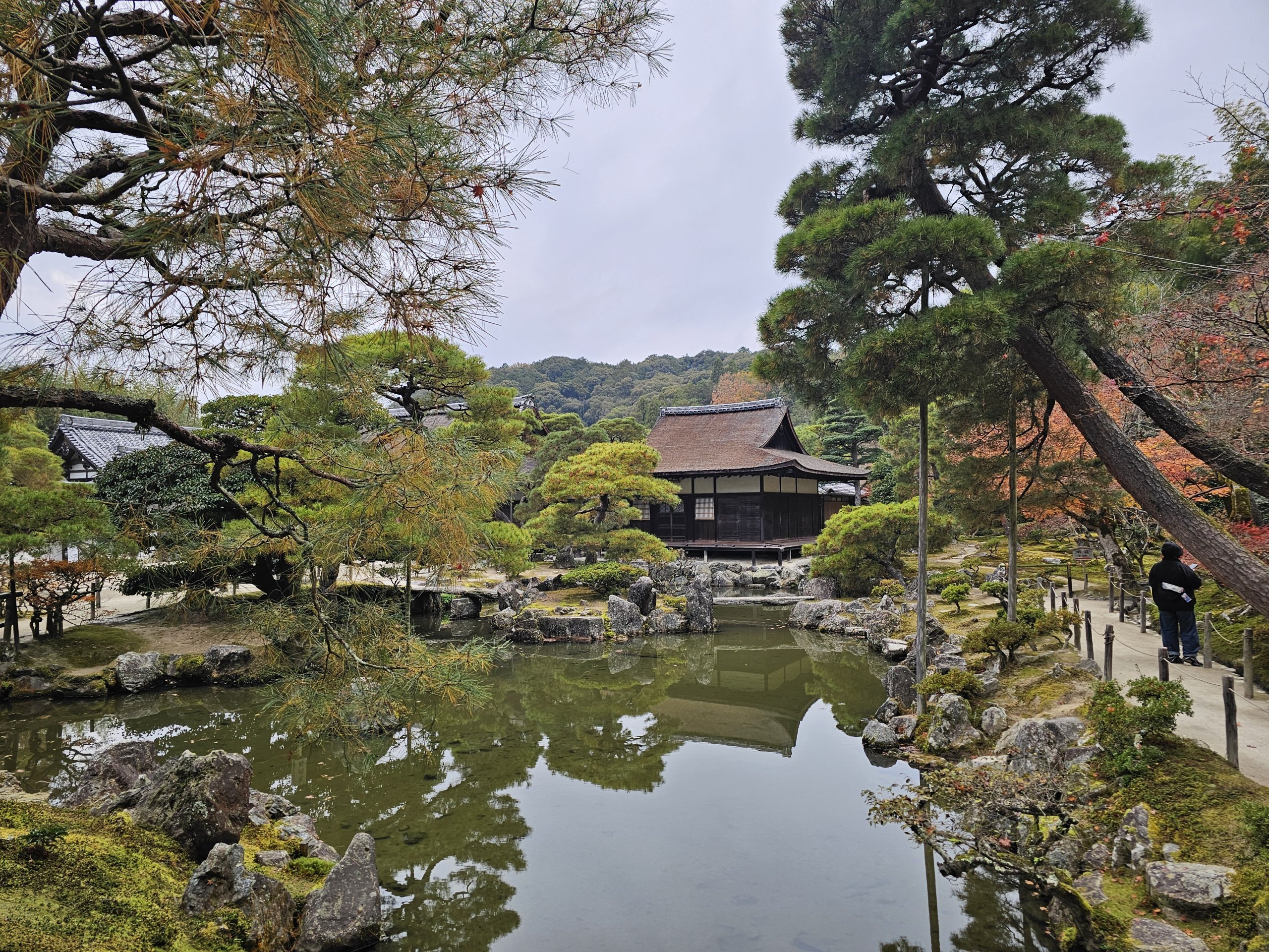 Situé dans la partie orientale de Kyoto, il semble beaucoup plus calme que le Pavillon d'or. La principale force de l'endroit ne réside pas dans le bâtiment lui-même, mais dans les jardins.