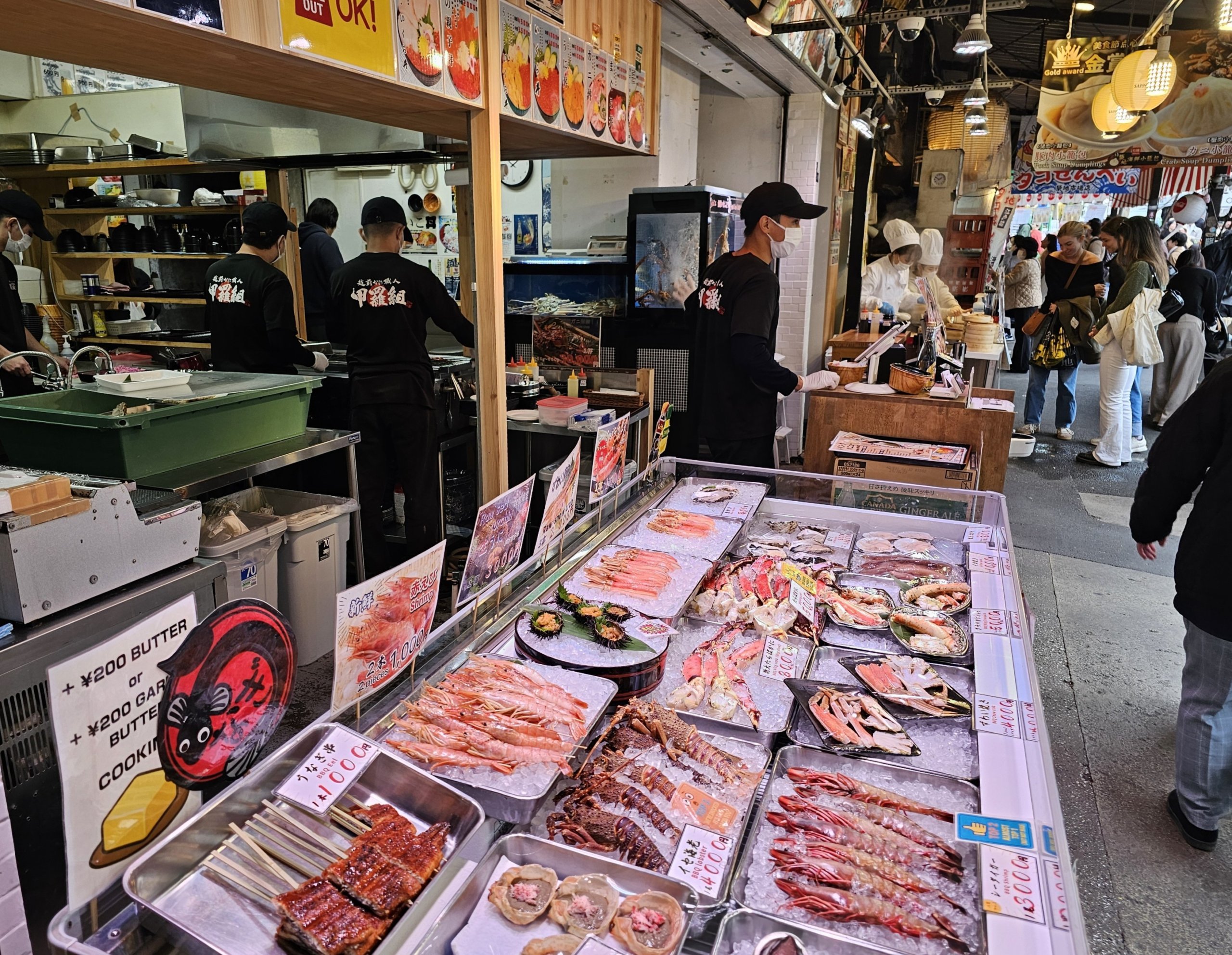 Vous y trouverez non seulement des étals de poissons, mais aussi d'autres spécialités japonaises comme l'okonomiyaki, les boulettes de riz ou même des cafés classiques.