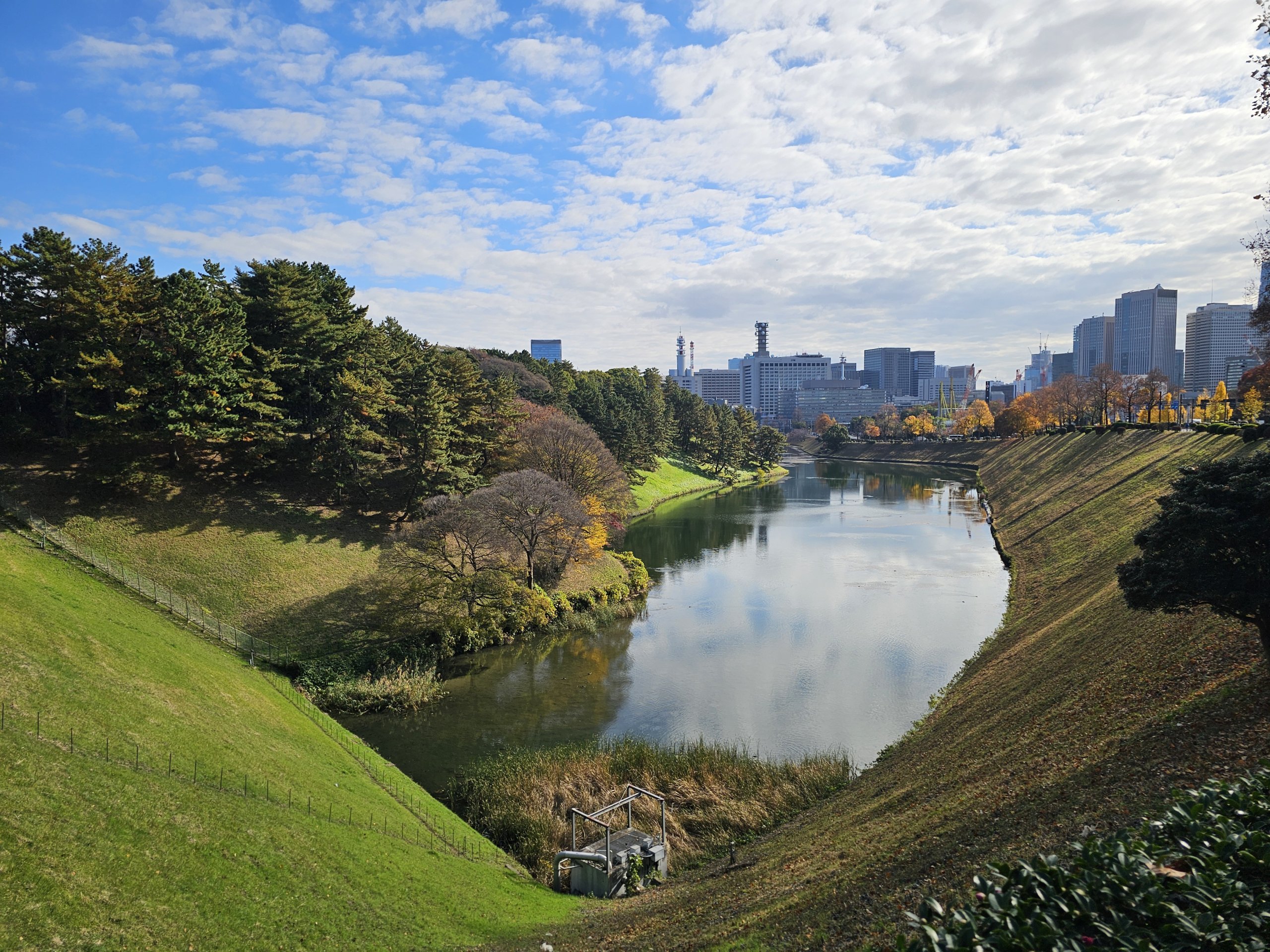 J'ai commencé ma promenade à la gare de Tokyo, j'ai traversé les jardins de l'Est et le parc Kitanomaru, et j'ai contourné les douves pour revenir devant la partie principale du palais jusqu'au pont Nijubashi.