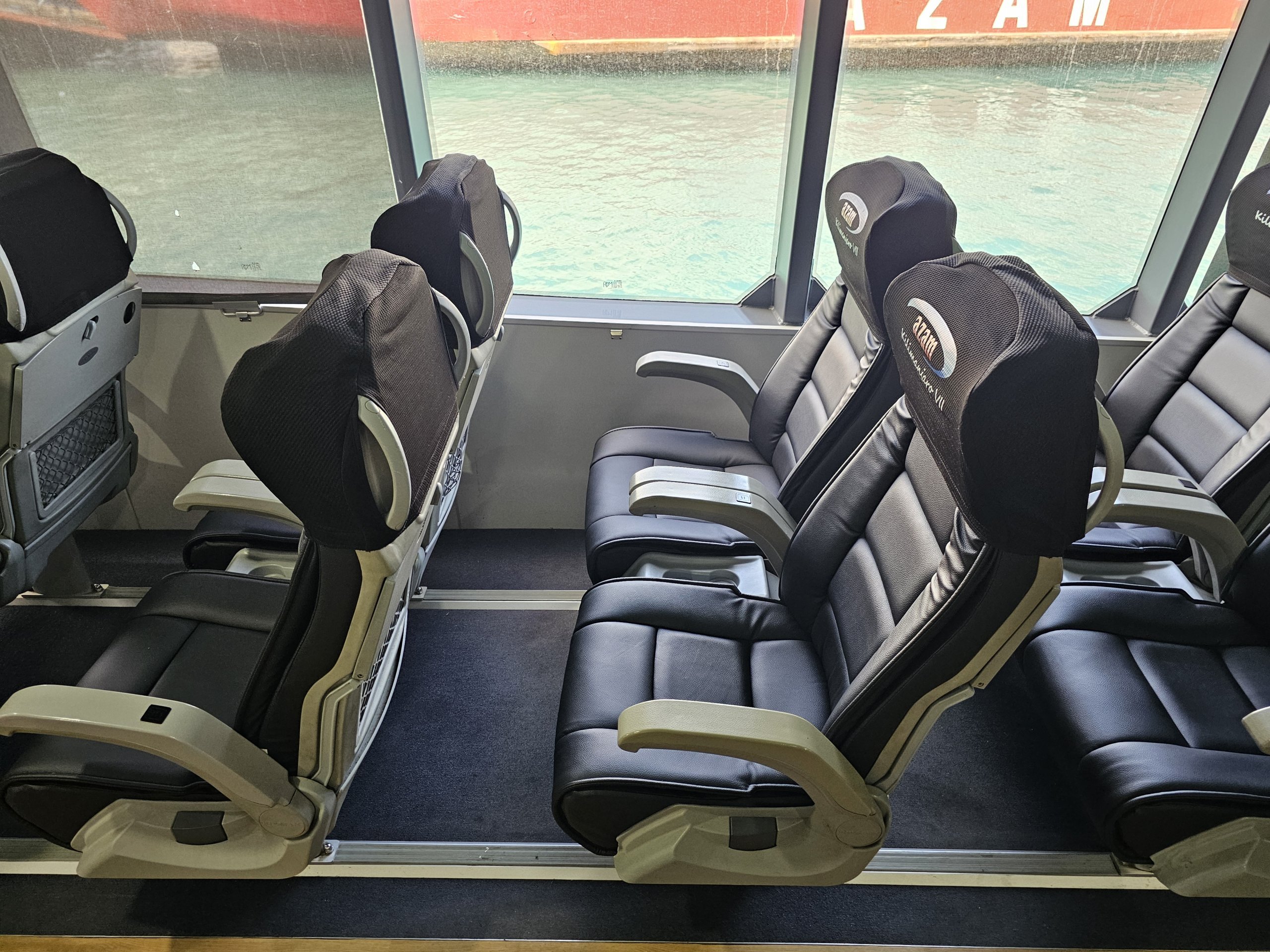 - Azam Marine - catamarans modernes rapides rouges et blancs naviguant 4 fois par jour + 1 fois par jour en ferry lent de nuit