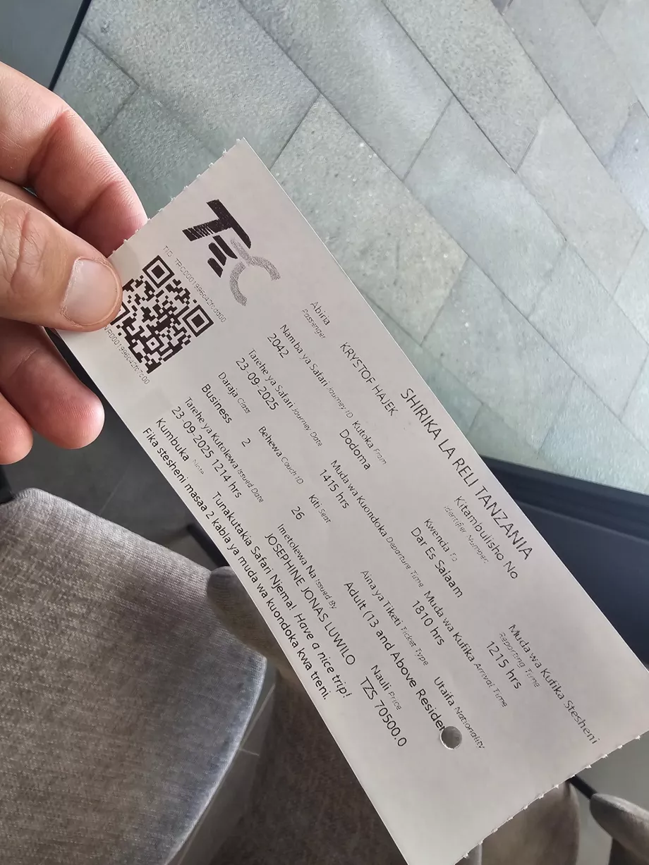Les billets pour les trains modernes de la SGR peuvent également être achetés par l'intermédiaire de tiers, comme 12go.asia, que nous utilisons volontiers lorsque nous voyageons en Asie. Cependant, il n'a pas du tout fonctionné en Tanzanie. Ce site web organise les billets de train par l'intermédiaire d'un intermédiaire local, mais même après plusieurs demandes pressantes, il n'a pas envoyé le billet et j'ai dû en acheter un nouveau à la gare.