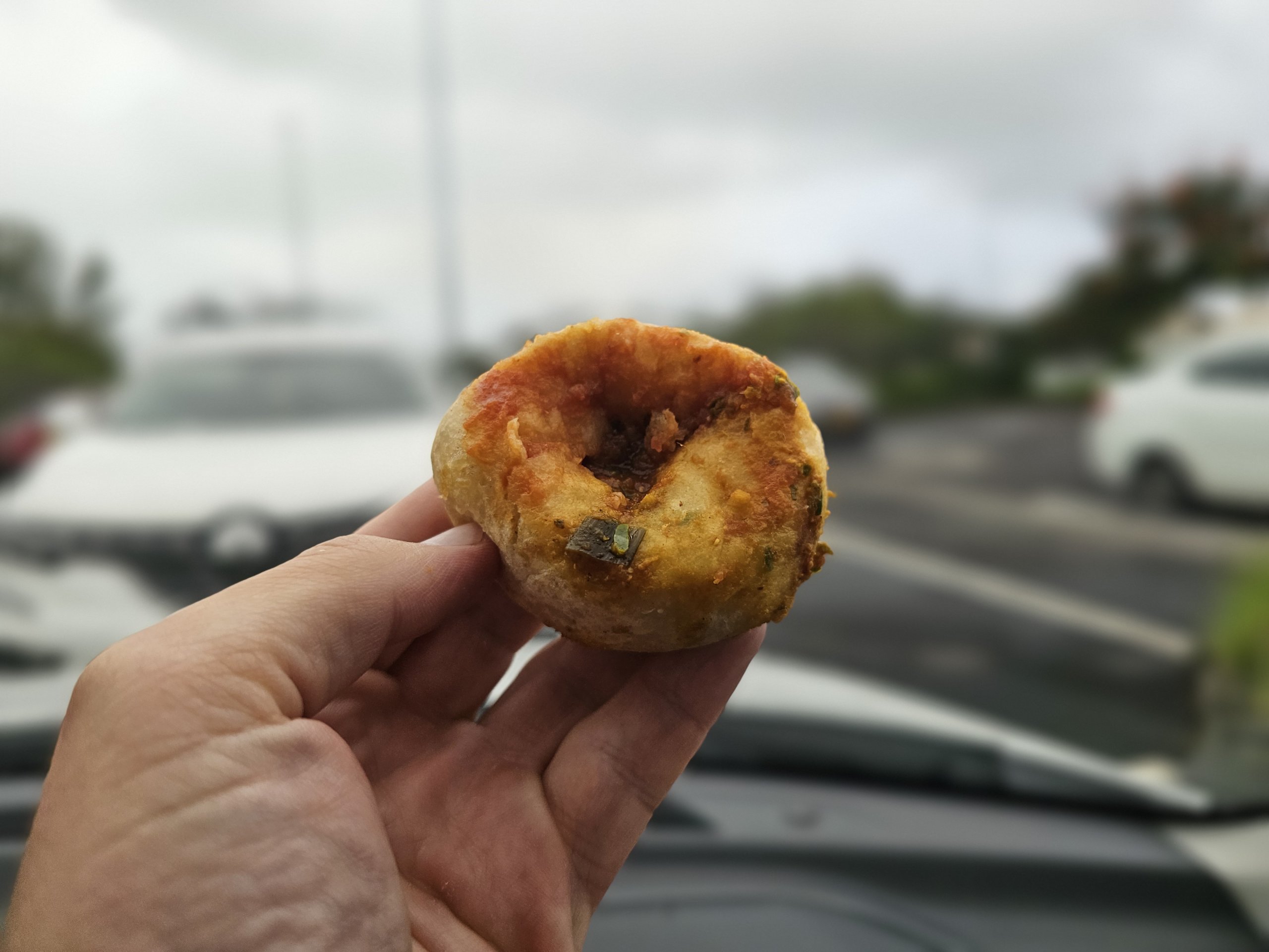 Samosa - mon en-cas préféré sur la plage ! Il s'agit d'une pâte croustillante en forme de triangle, fourrée de pommes de terre, de légumes, de sauces, de viande, de fromage, de crevettes et de poisson. Bref, n'importe quoi !