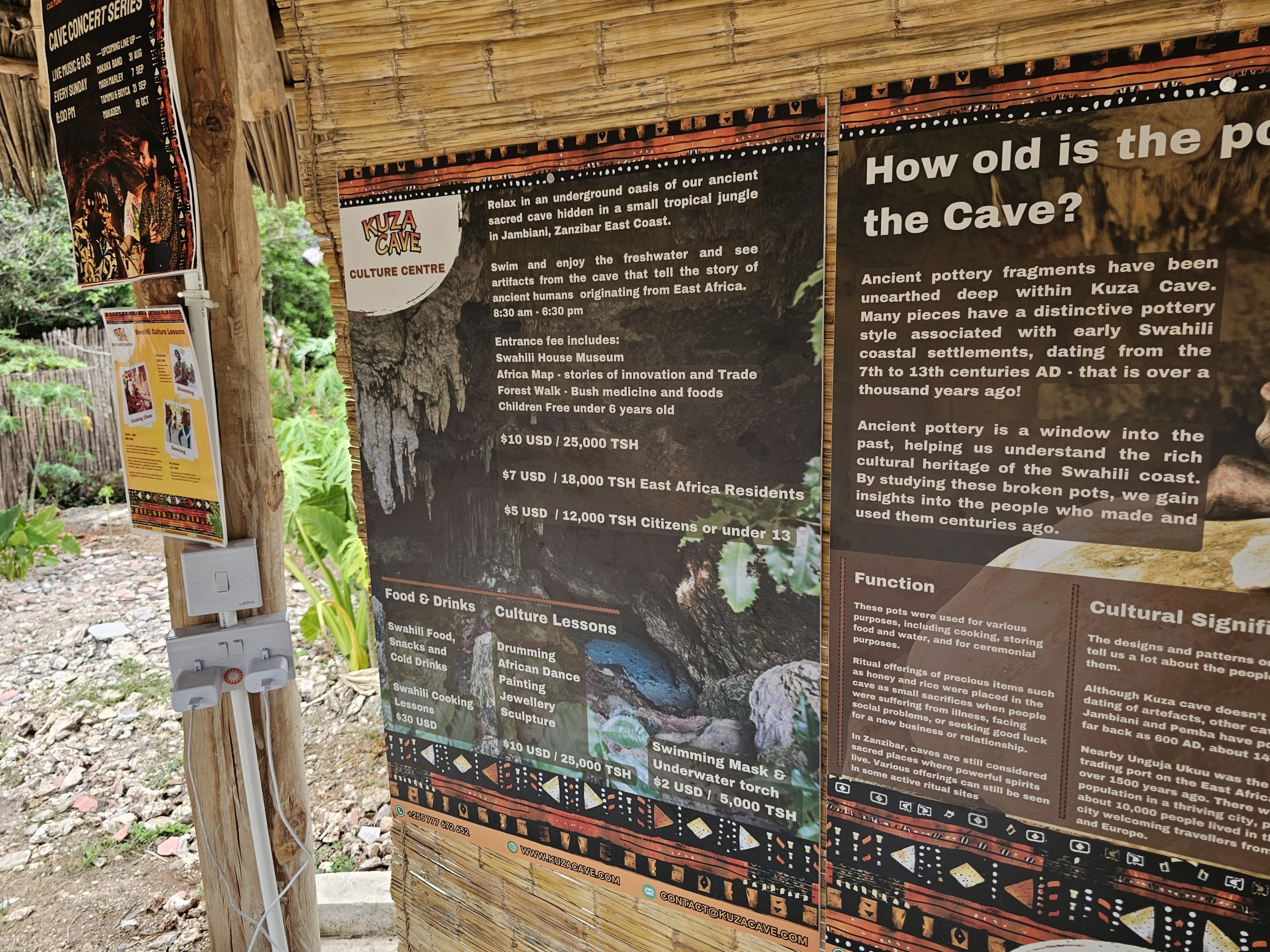 La grotte de Kuza se trouve à environ 1 km de la station balnéaire de Jambiani et la principale attraction est la baignade dans la rivière souterraine naturelle qui forme un petit lac au fond de la grotte.