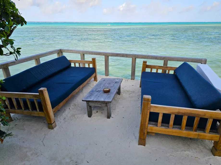 On peut s'asseoir à l'intérieur ou sur la terrasse extérieure et la plupart des gens viennent ici le soir après une journée à la plage.