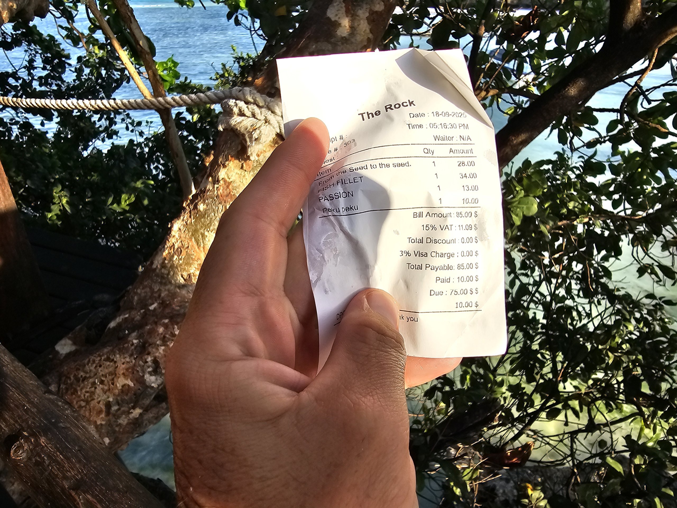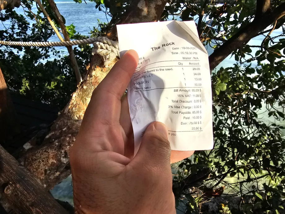 Je recommande de porter des chaussures de plage classiques, c'est-à-dire des tongs ou des pantoufles. Vous ne pouvez pas monter à bord du bateau avec les pieds secs et même si vous marchez sur la passerelle à marée basse, une vague peut arriver. Les tongs sont donc les chaussures les plus pratiques pour visiter le restaurant !