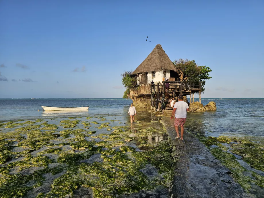 La petite maison aux allures de conte de fées se dresse sur un rocher au milieu de l'océan, à une cinquantaine de mètres du rivage. Au premier coup d'œil, on ne se doute pas qu'elle abrite l'un des restaurants les plus luxueux de Zanzibar.
