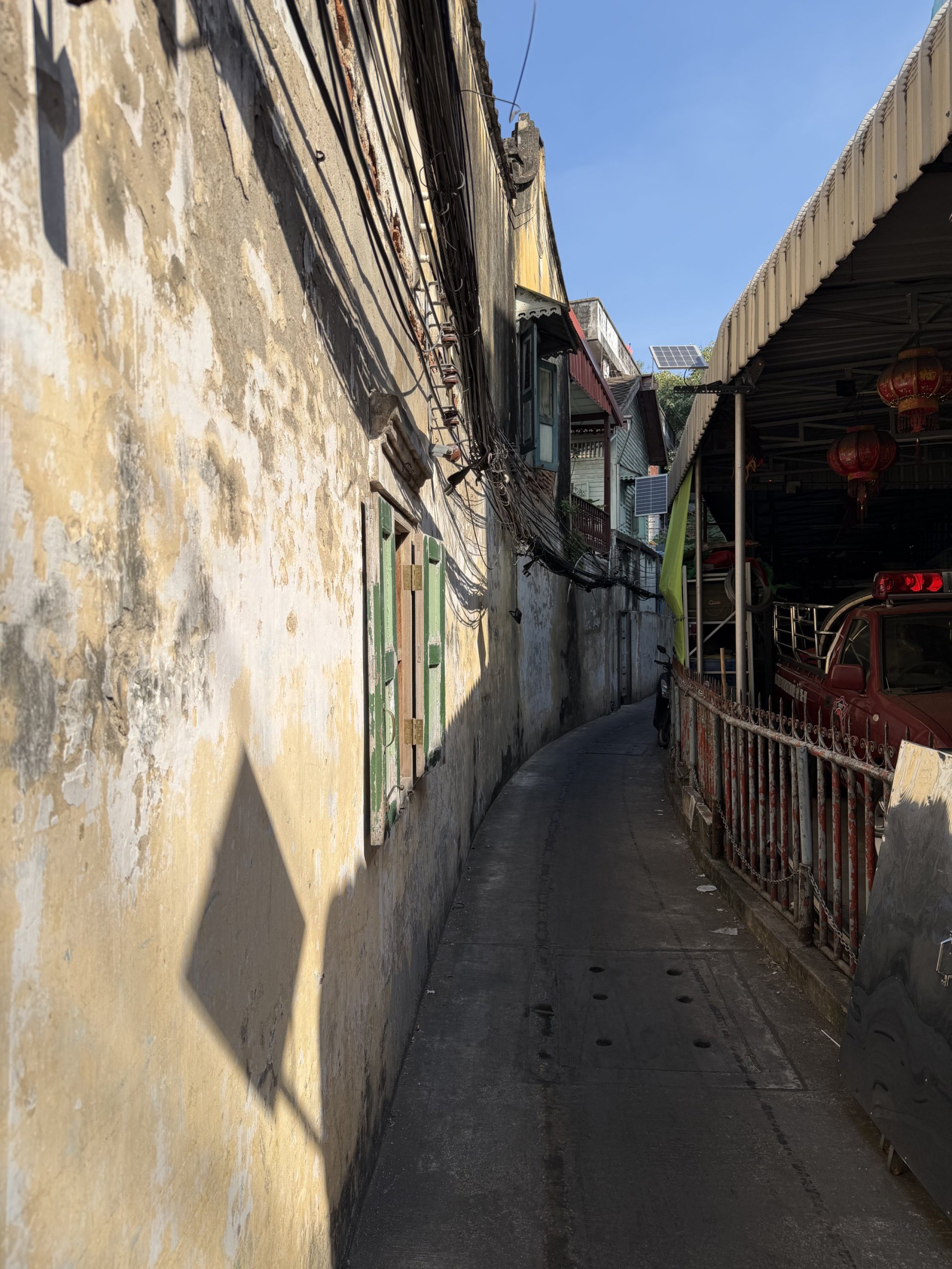 Les rues étroites, les ateliers automobiles rouillés, les vieilles maisons chinoises, les petits sanctuaires et les cafés installés dans d'anciens entrepôts créent un environnement qui ressemble plus à un décor de film qu'à un quartier touristique.