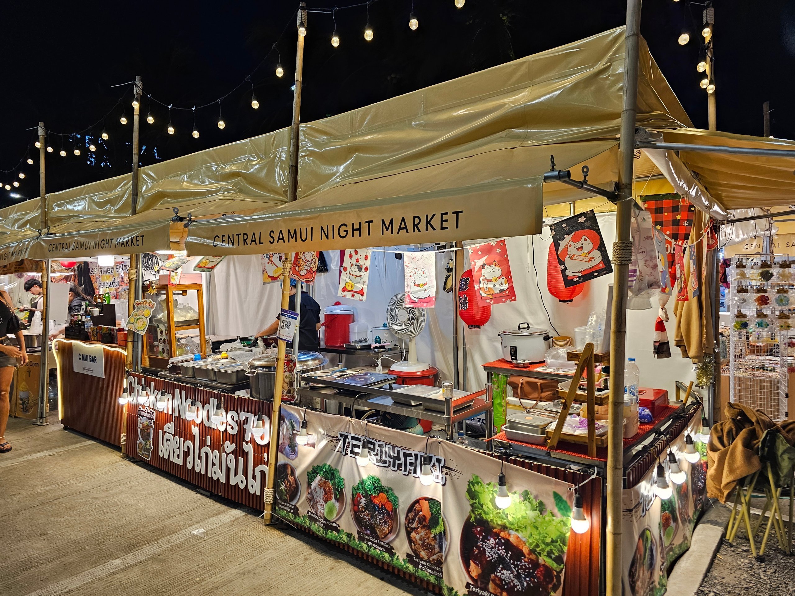 Le soir, le centre-ville se transforme en un petit marché de nuit, qui complète l'offre des food courts ainsi que celle, plus locale et moins chère, du Chaweng Night Market, situé de l'autre côté de la rue.