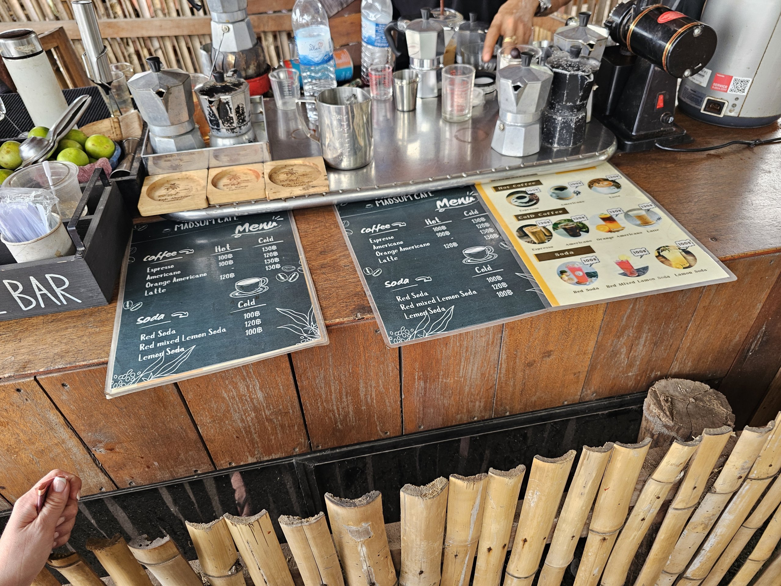 - le prix du café est d'environ 130 thb, celui de la nourriture à partir de 200 thb, uniquement en liquide