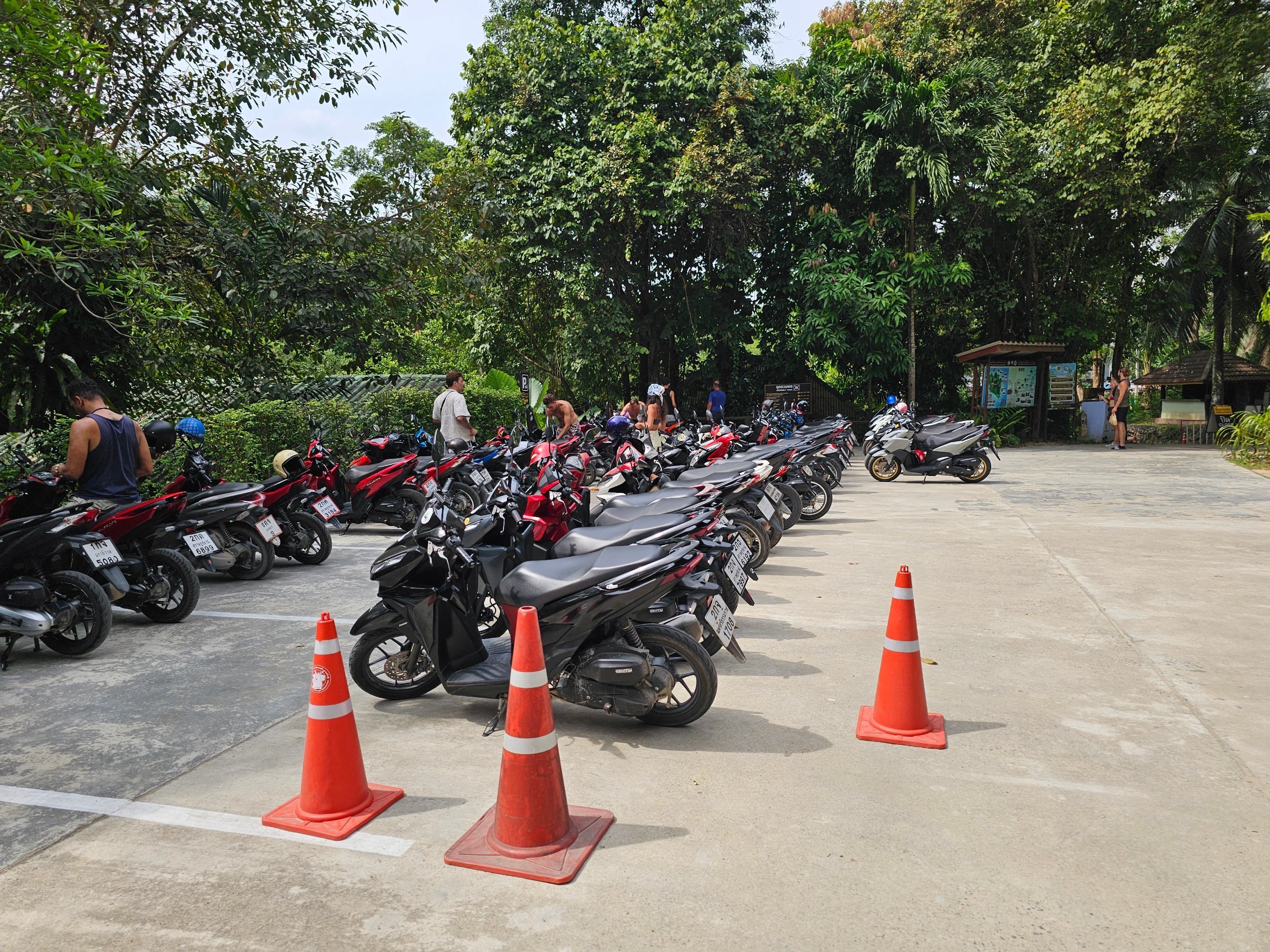 A l'entrée, il y a un grand parking pour les scooters (20 thb) et les voitures (30 thb). Vous ne pouvez payer qu'en espèces.