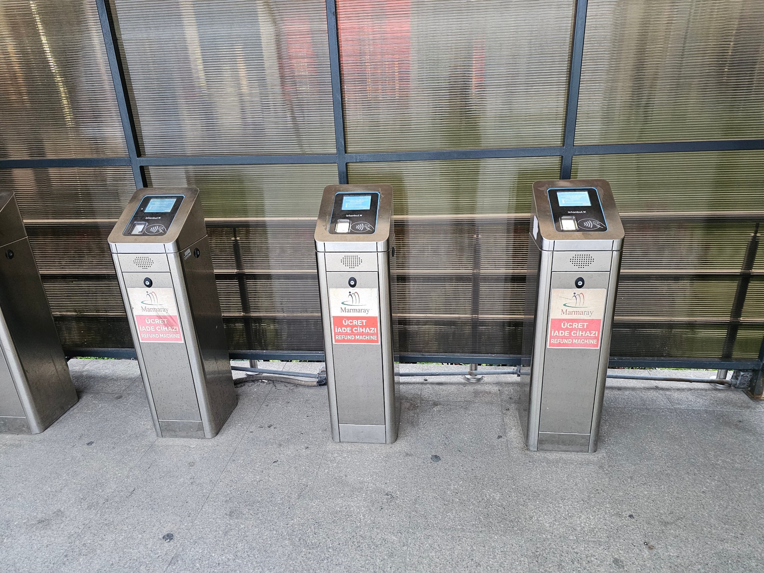 Lorsque vous sortez de la gare, vous trouvez les petits valideurs argentés (parfois rouges) "Refund machine", auxquels vous rattachez l'IstanbulKart et le prix réel est calculé (généralement autour de 35 essais pour la courte traversée Sirkeci - Üsküdar.
