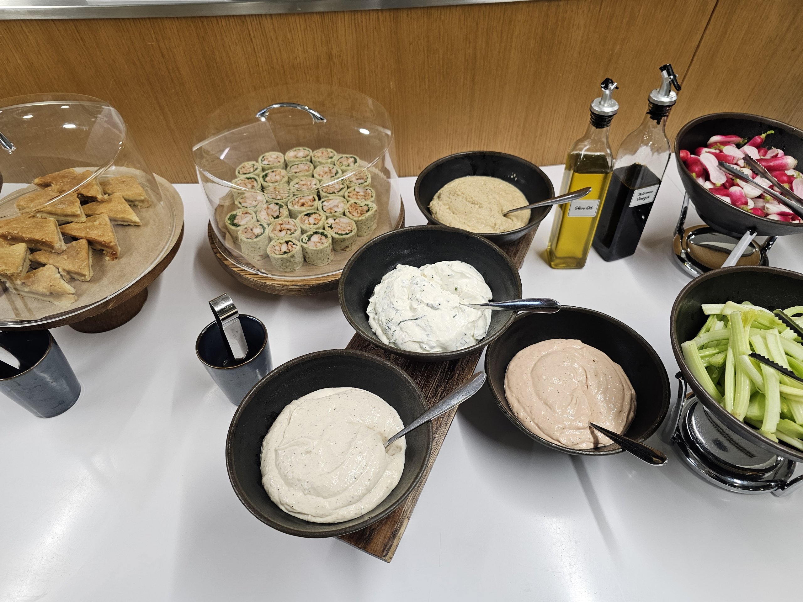 Il y a aussi quelques bols de légumes, ce que j'apprécie. À côté, vous avez le choix entre trois sortes de pâtes à tartiner et de pâtisseries. En revanche, les fruits manquent presque totalement.