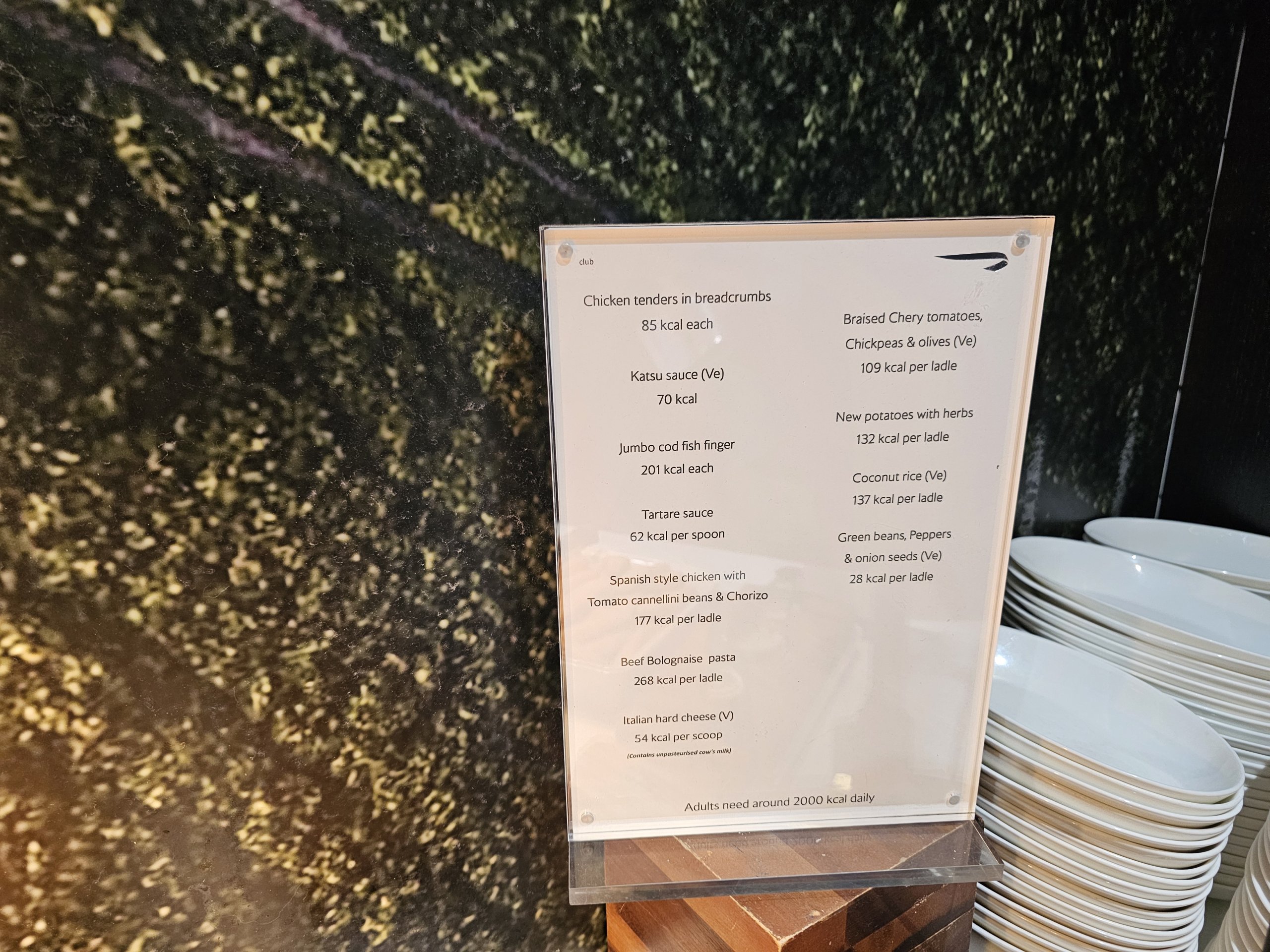 Sur une note positive, un panneau indique la teneur en calories de tous les aliments proposés.
