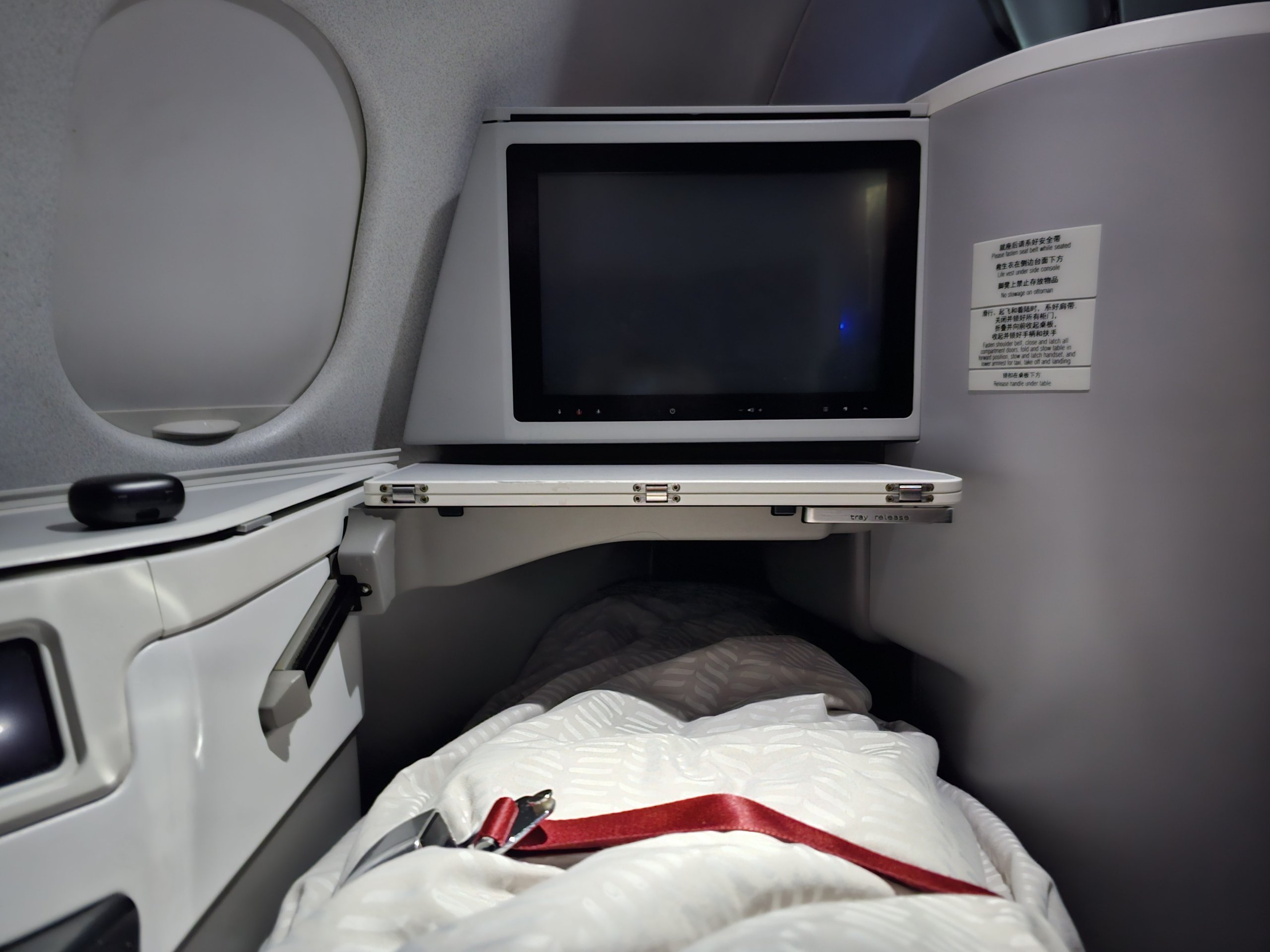 Le premier tronçon Prague-Pékin était assuré par un Airbus A330-300 plus ancien, mais dont la configuration était plus récente que celle du tronçon PEK-BKK. Le type d'avion peut jouer un rôle, surtout si l'on s'intéresse au confort du sommeil, à l'intimité ou à une configuration particulière de la cabine.
