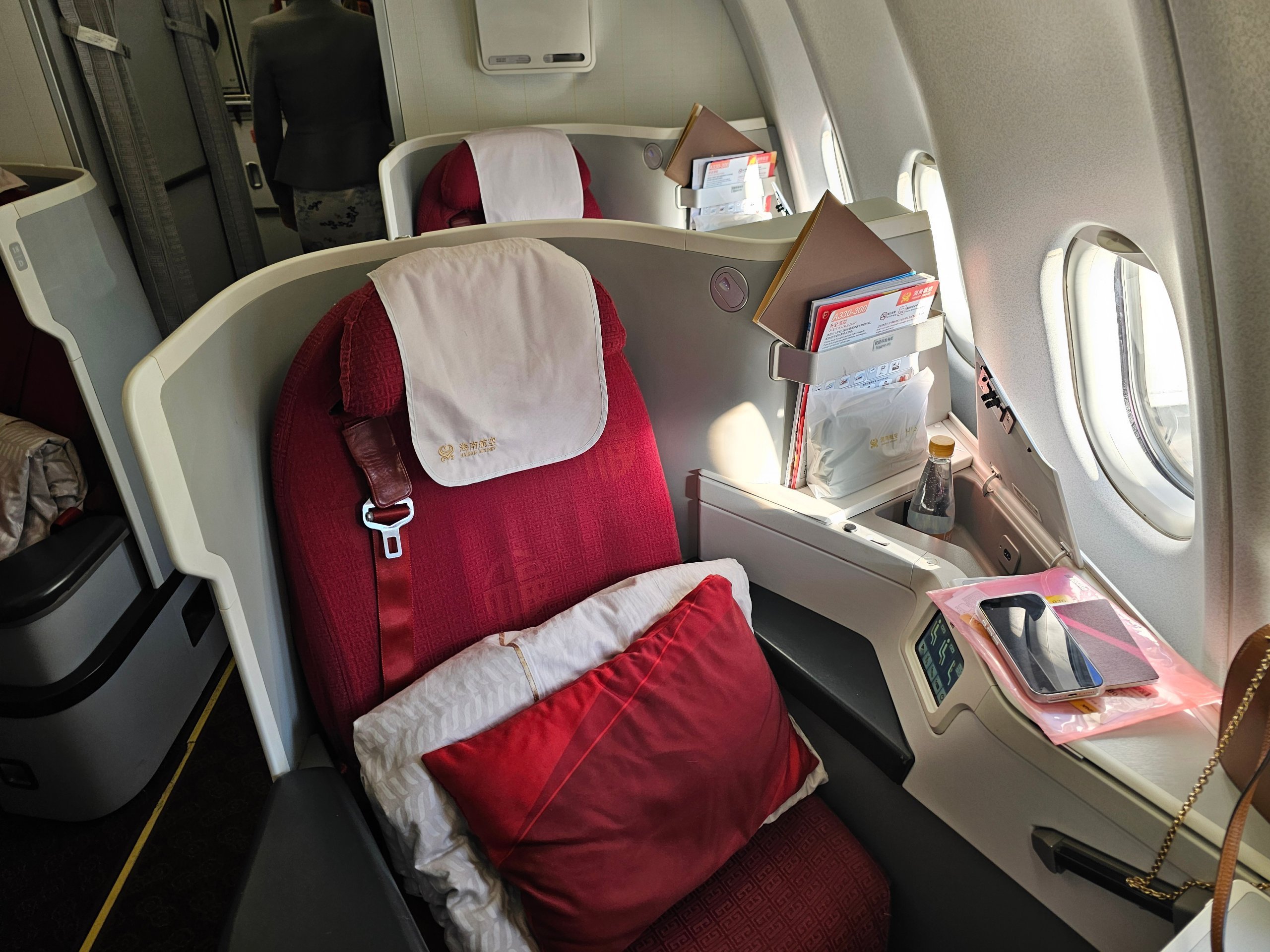L'Airbus A330-300 de Hainan Airlines offre une bonne intimité et un lit entièrement plat en classe affaires. C'est l'essentiel qui fait la différence sur un vol de 10 heures.