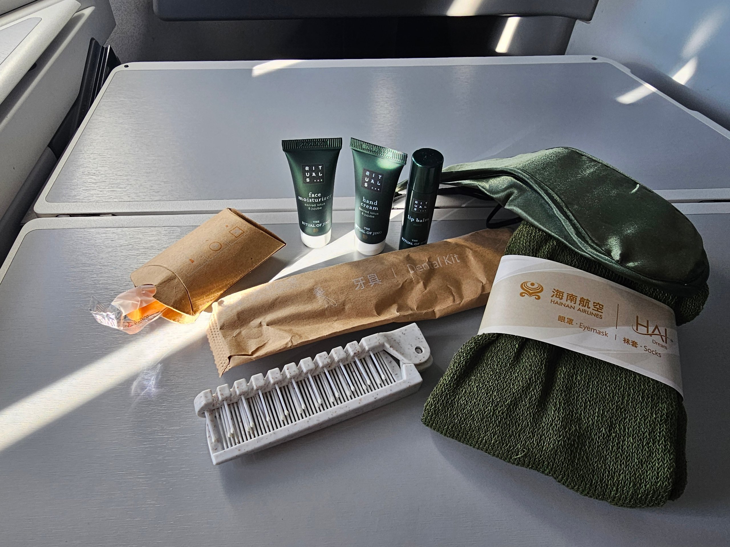 Le kit de commodités de la classe affaires de Hainan Airlines est solide à première vue, mais sans grande originalité.