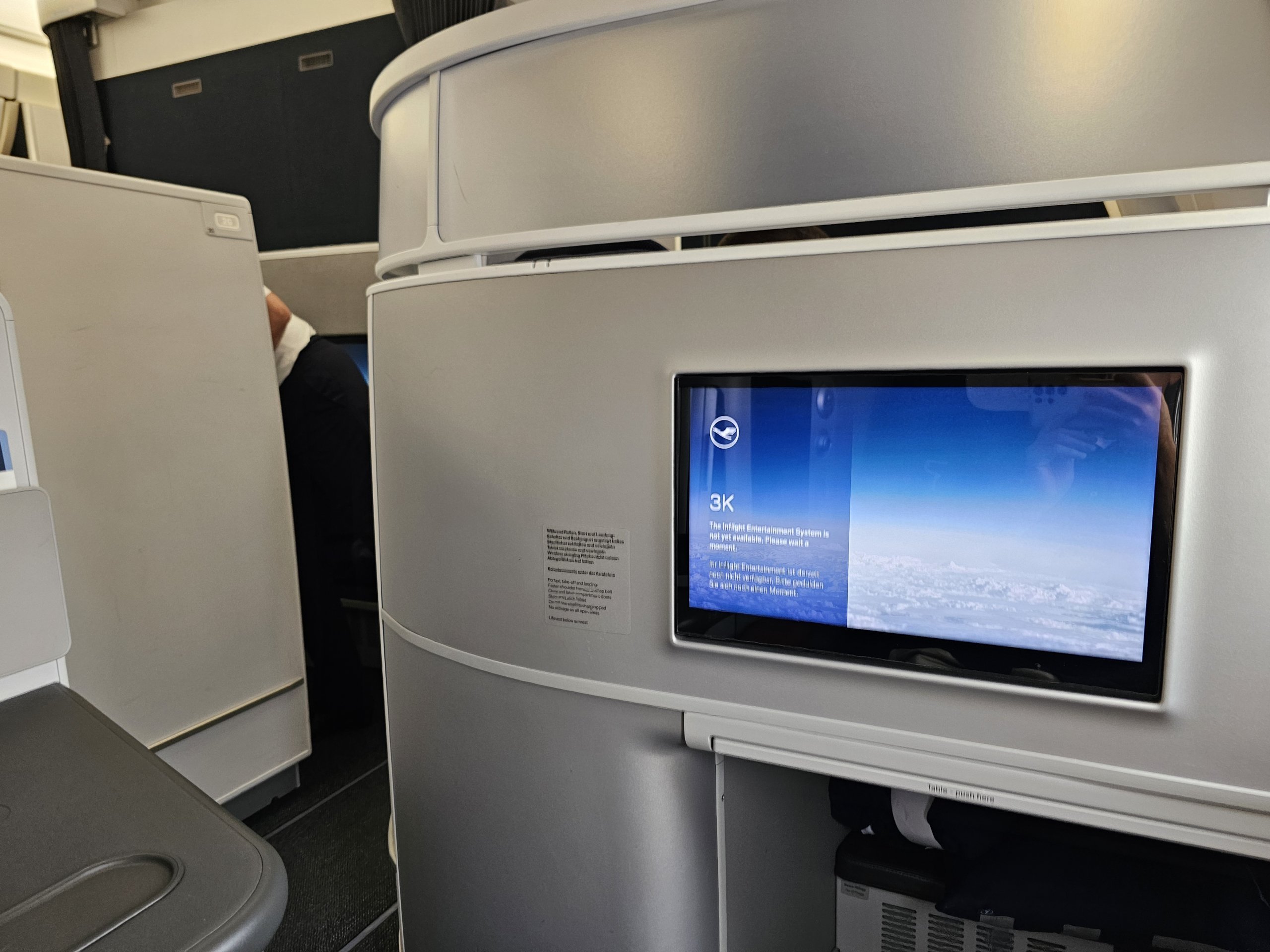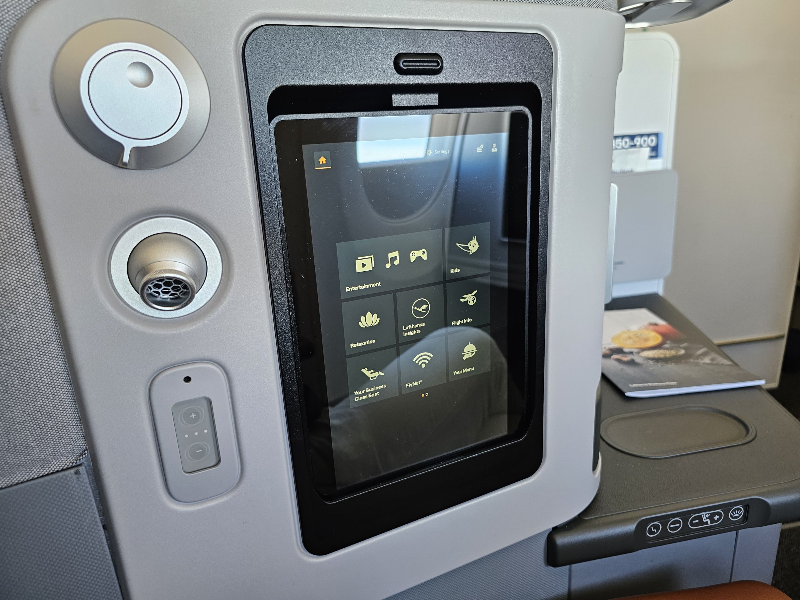 L'écran d'une résolution de 4K est formidable. Les commandes sont soit tactiles directement sur l'écran, soit via une tablette sur le siège, de sorte que vous pouvez contrôler l'IFE avec le siège incliné ou depuis le lit.