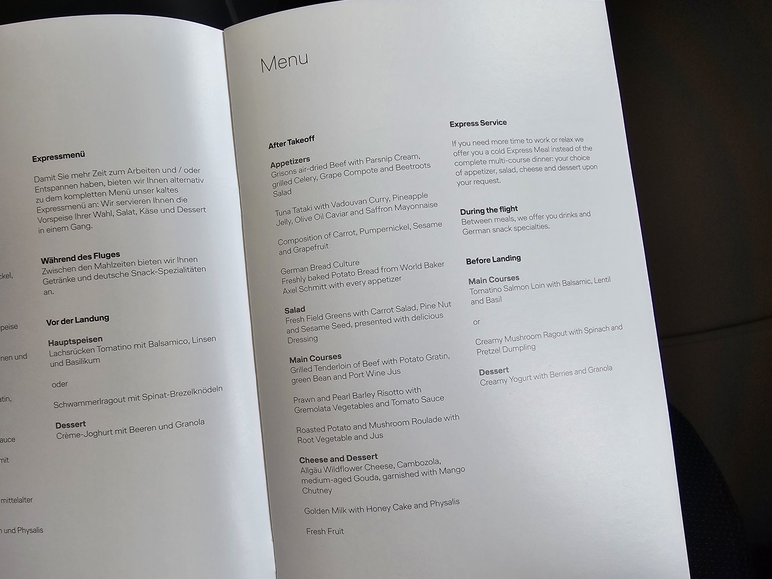 Heureusement, vous pouvez consulter le menu avant votre vol sur le site lufthansa.com/menus-in-business-class.