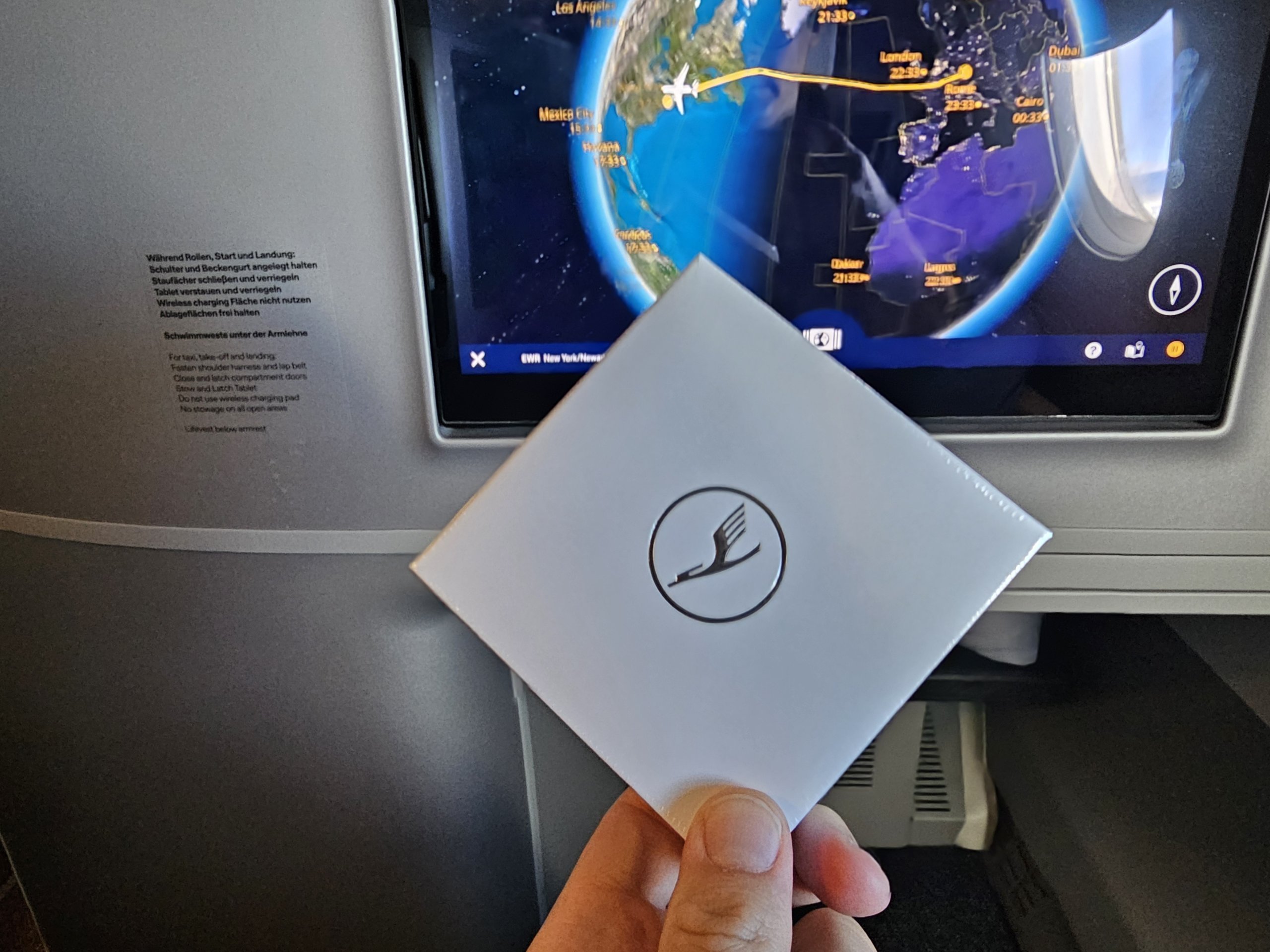 - Casque anti-bruit pour l'IFE (mais vous pouvez utiliser votre propre casque qui se connecte à l'écran via Bluetooth).