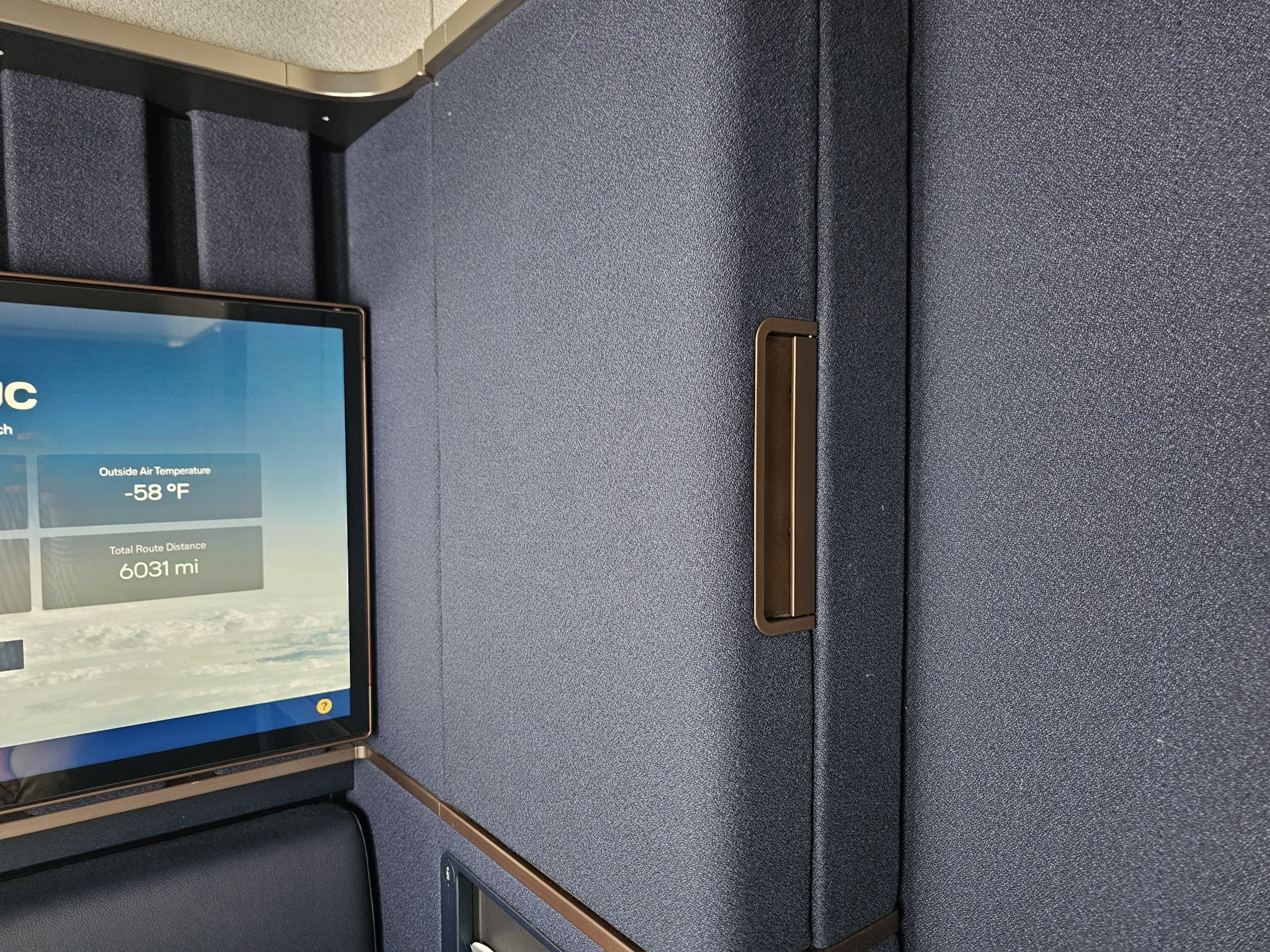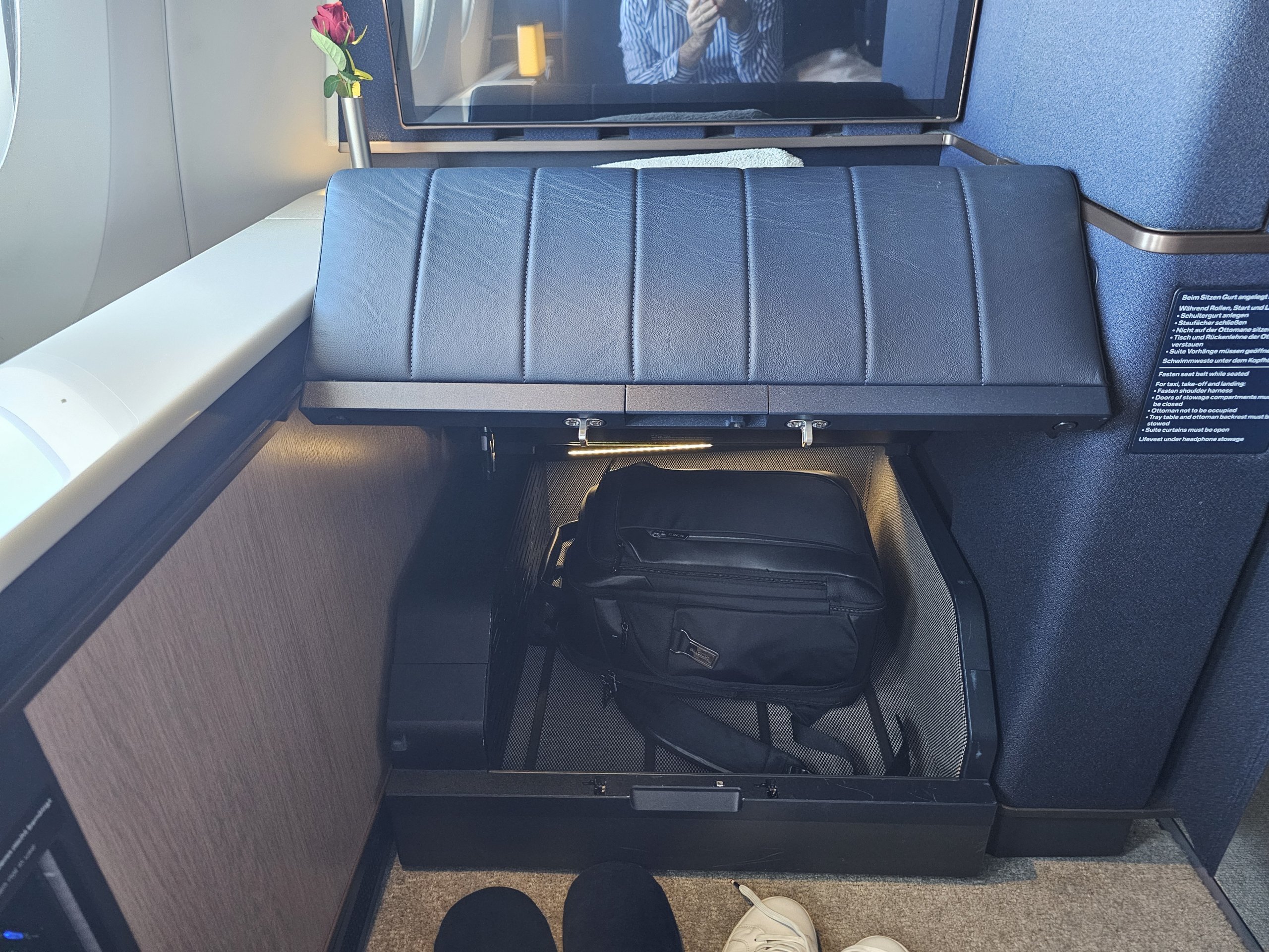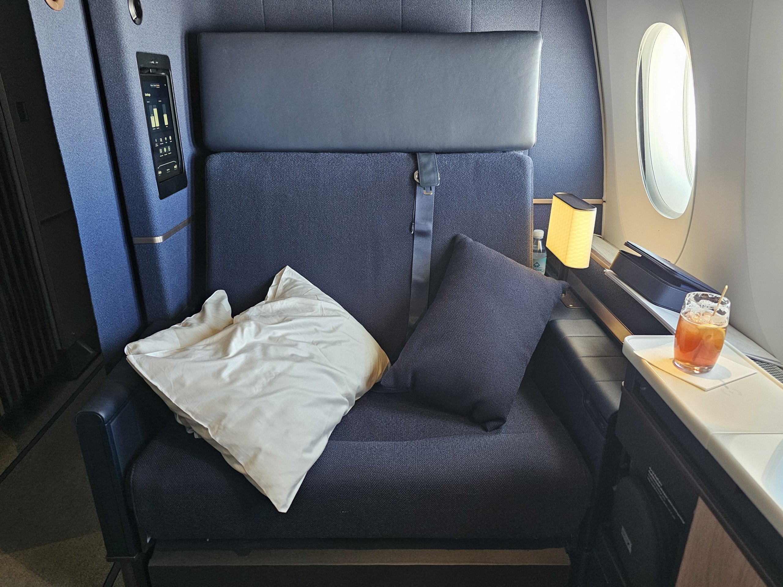Le design est plutôt austère en allemand, mais pour moi très élégant ! Bien sûr, la nouvelle Première d'Air France est peut-être plus hilarante, mais elle n'a pas de porte ou d'écran du sol au plafond, ce qui est absolument essentiel pour moi en Première classe.