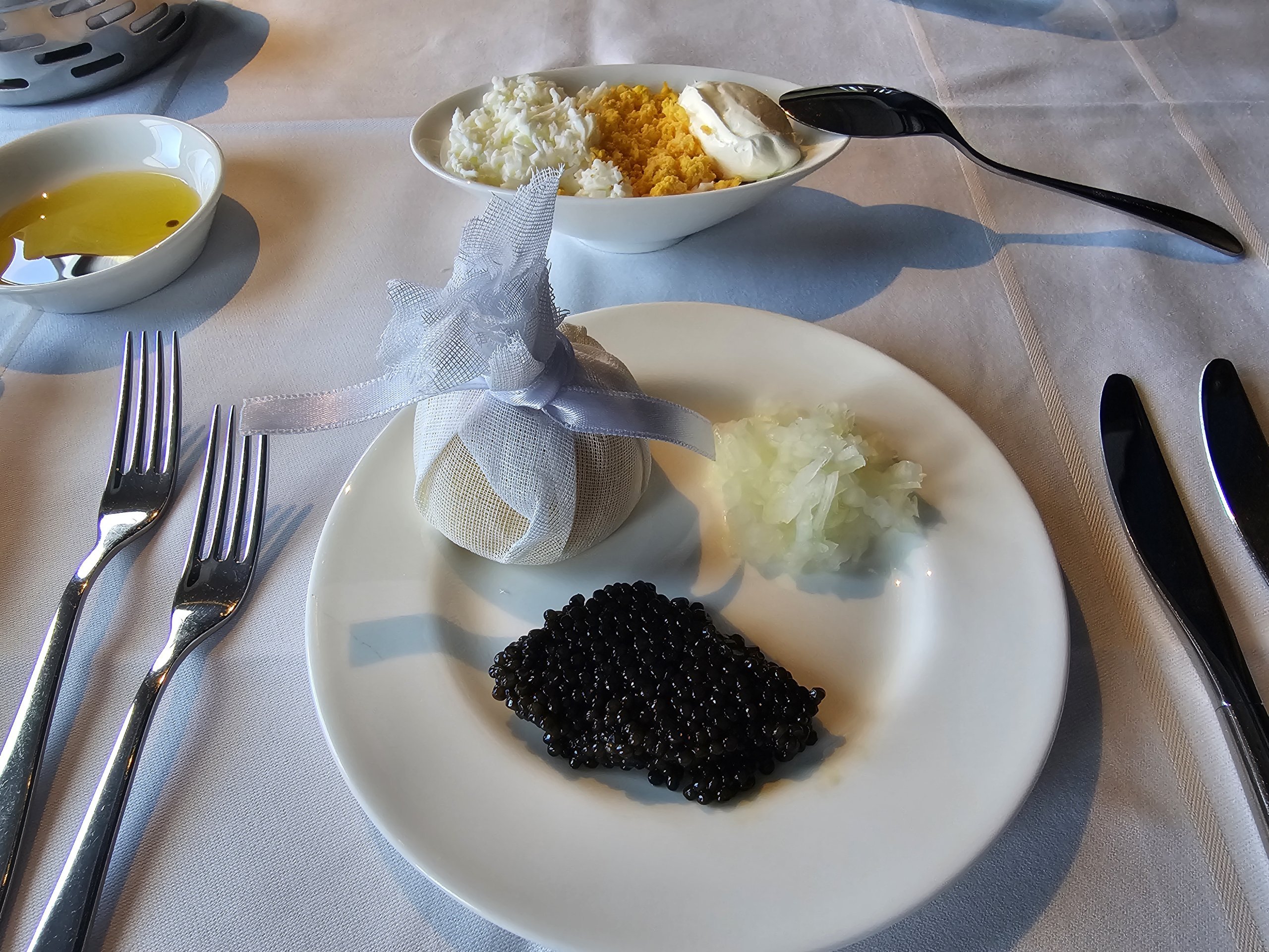 Entrée et service de caviar