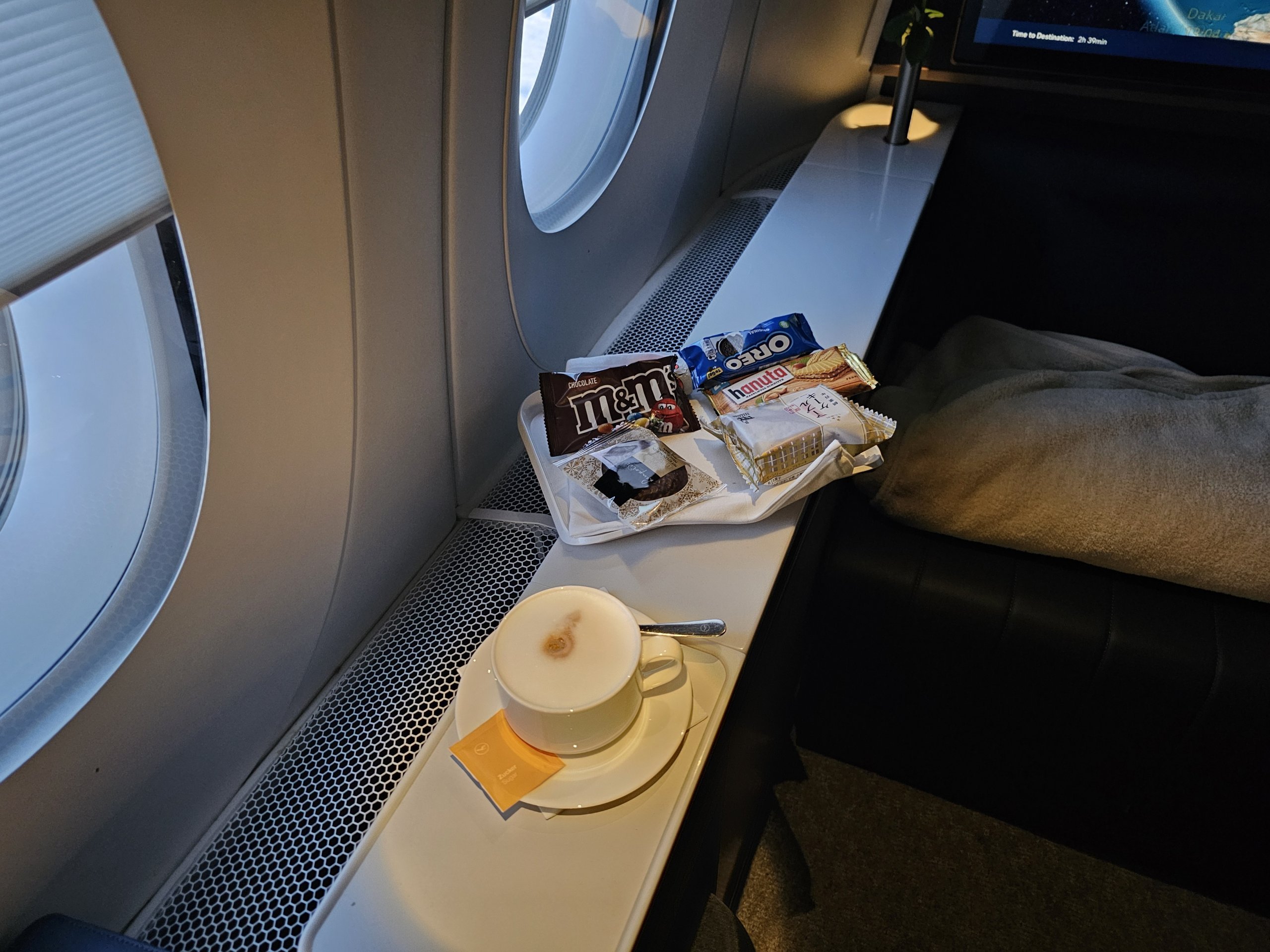 L'offre de petits-déjeuners est un peu faible, mais cela ne me dérange pas car je sais déjà , pour avoir volé de Francfort au Japon, que le service de première classe de Lufthansa est plus qu'adéquat.