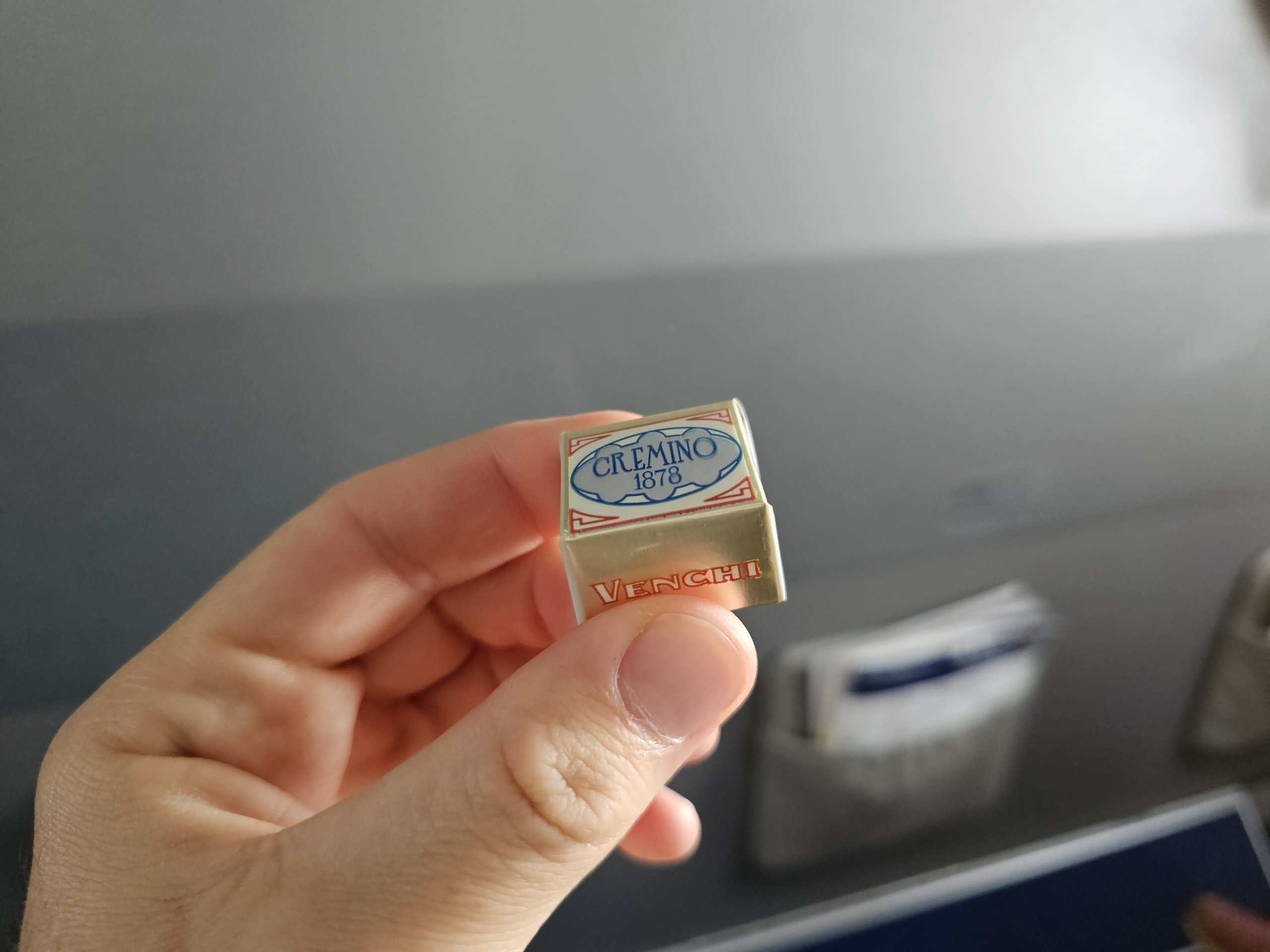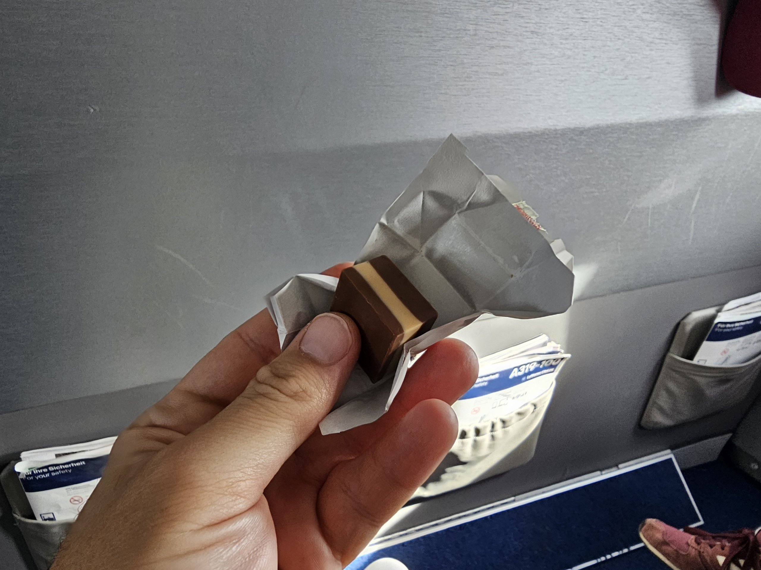 Juste avant l'atterrissage, nous avons encore droit à un petit chocolat élégant.